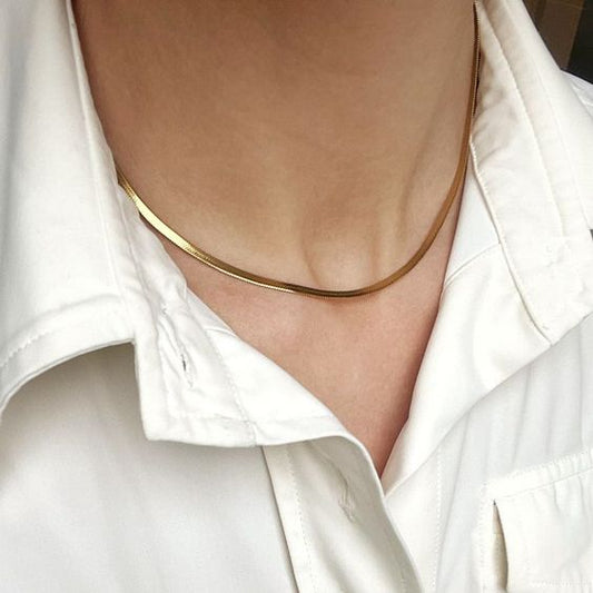 Sterling silver gold plated necklace "Flat snake 2mm"