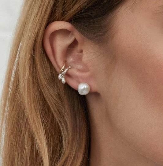 925 sterling silver gold plated earrings with natural pearls, 7mm