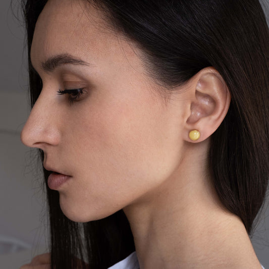 Sterling silver gold plated earrings with natural amber "Round, Yellow, 6mm"