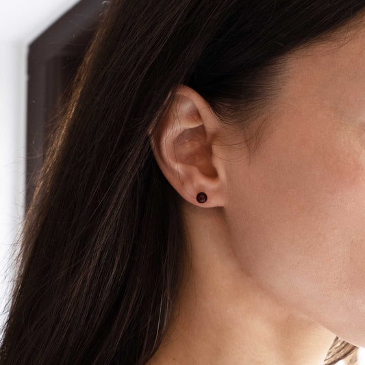 Sterling silver earrings with natural amber "Cognac round, 5mm"