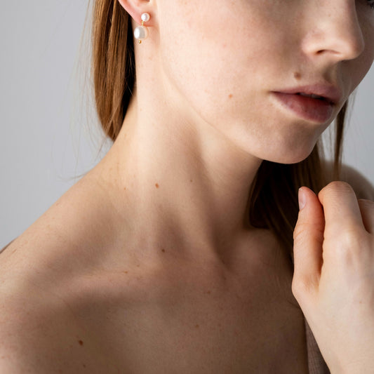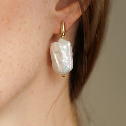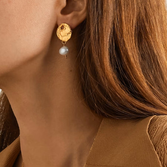 Pidulikud kullatud kõrvarõngad pärliga, 10-11mm