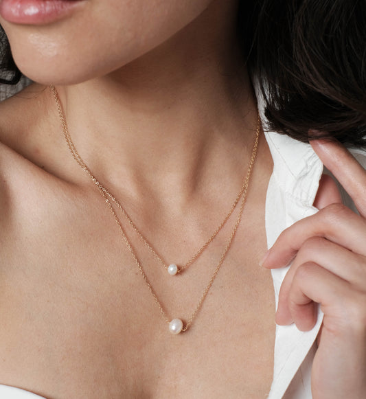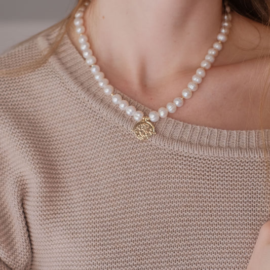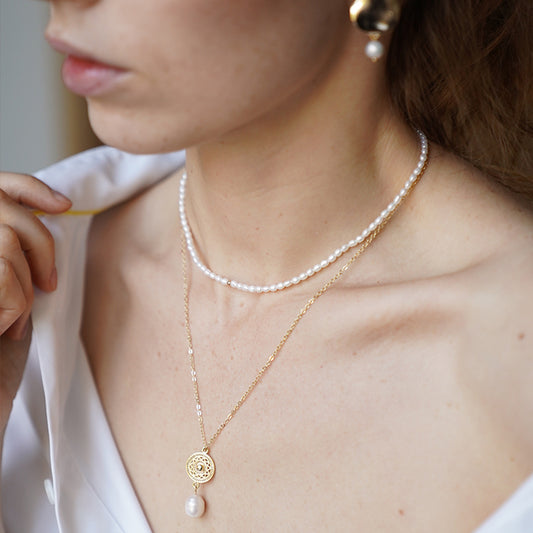 Elegantne kullatud/hõbetatud kaelakee pärliga