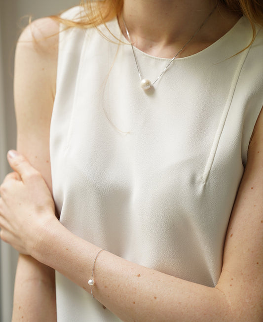 Elegantne hõbetatud kaelakee pärliga, 10mm