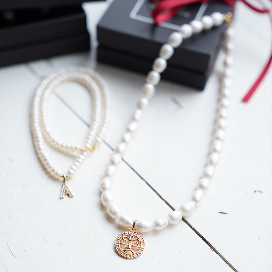 Pärlikee nimetähega. Pärli suuurus 6mm.