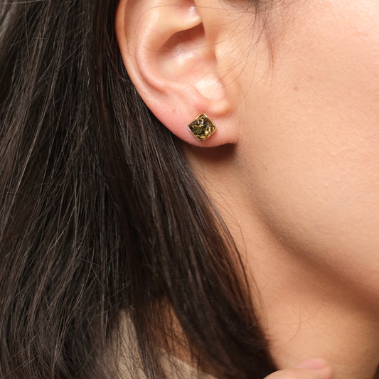Kullatud hõbekõrvarõngad merevaiguga "Green, square, gold"