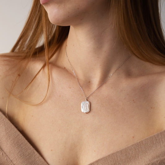 Stiilne hõbetatud ripats individuaalse graveeringuga + pärl