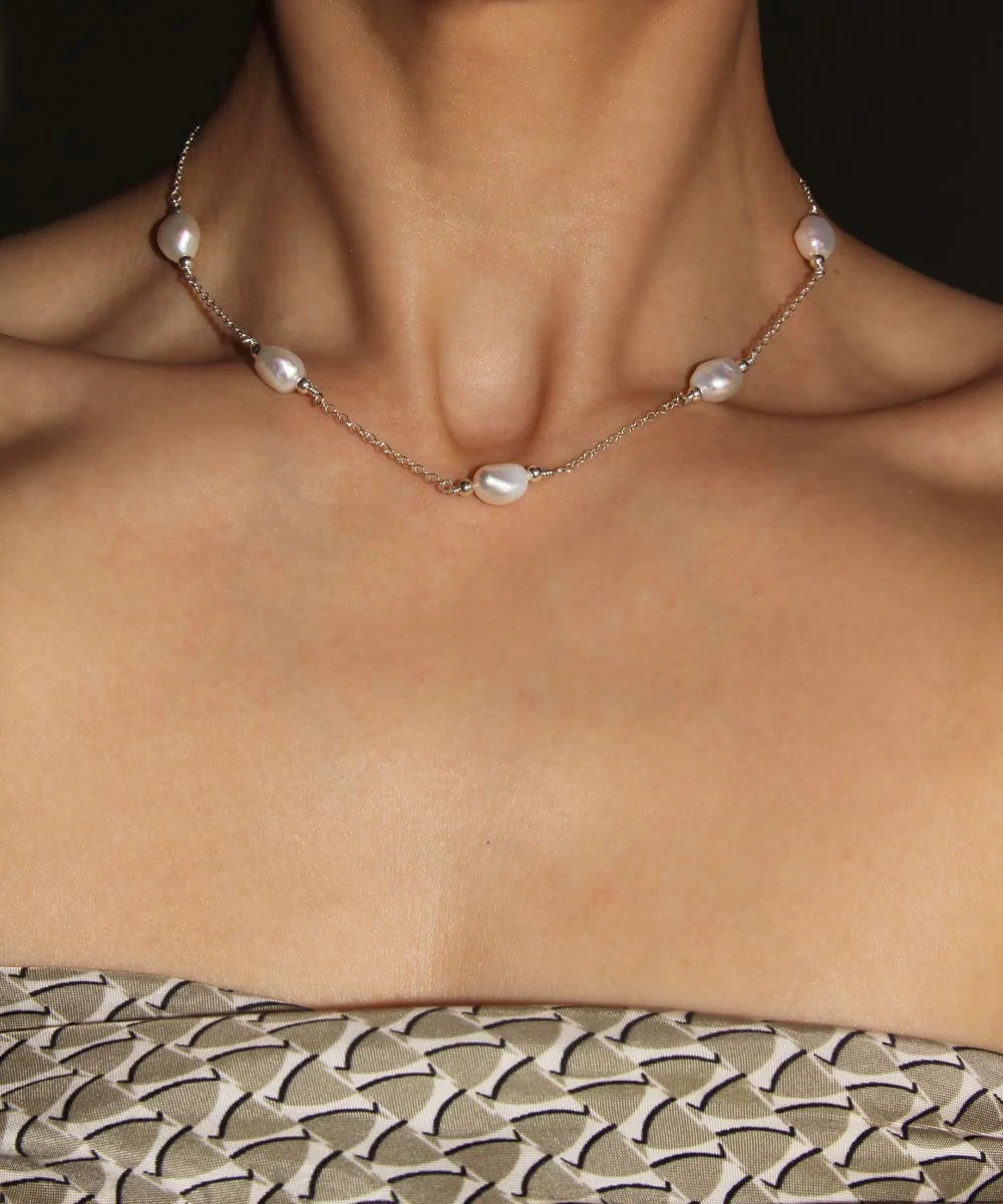 Sidabrinė grandinėlė su natūraliais perlais