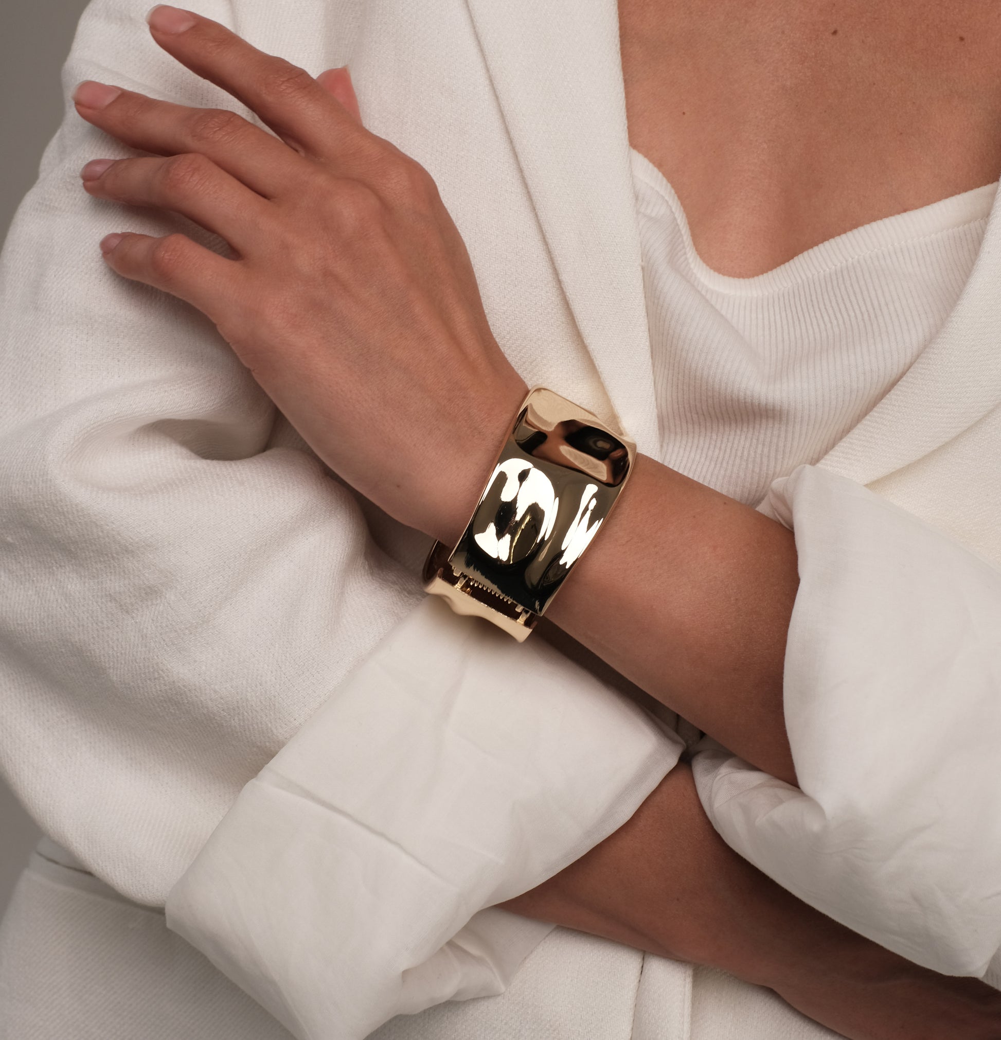 Pagaminta iš tvirto nerūdijančio plieno ir padengta auksu. Aukštos kokybės dizainas, sukurtas ilgam dėvėjimui. Vienas dydis – tinka daugeliui.