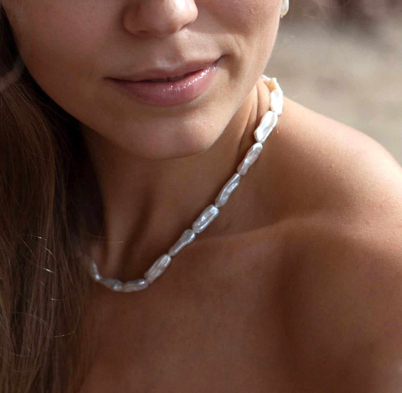 Natūralių perlų vėrinys. Sidabrinis 925 užsegimas.