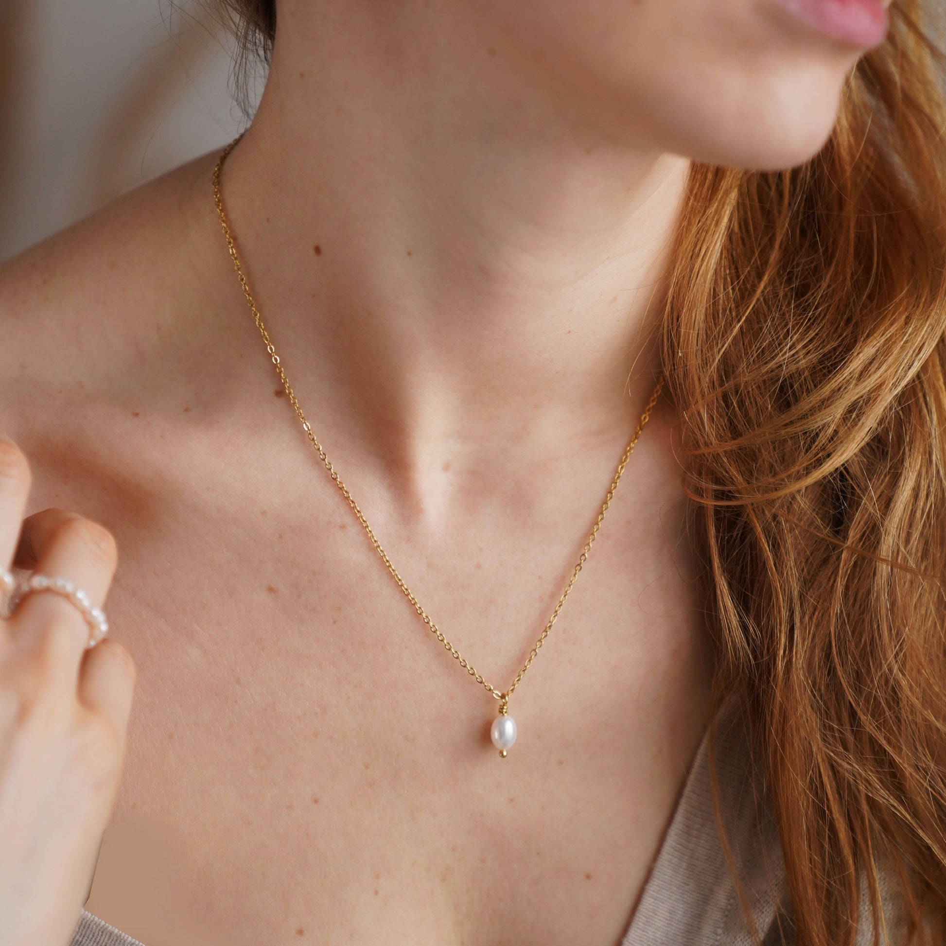 Kaklo papuošalas su natūraliu ovaliu perlu