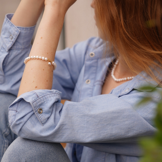 Pērļu rokassprādze ar apzeltītām/sudraba detaļām