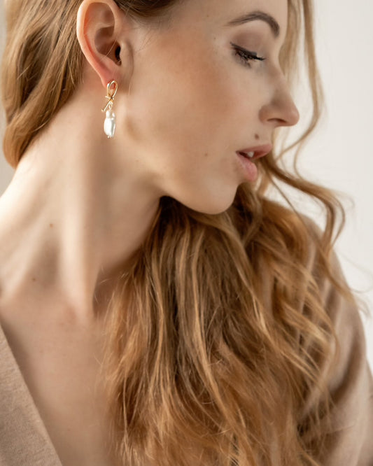 Apzeltīti auskari ar dabīgām pērlēm "Festive"