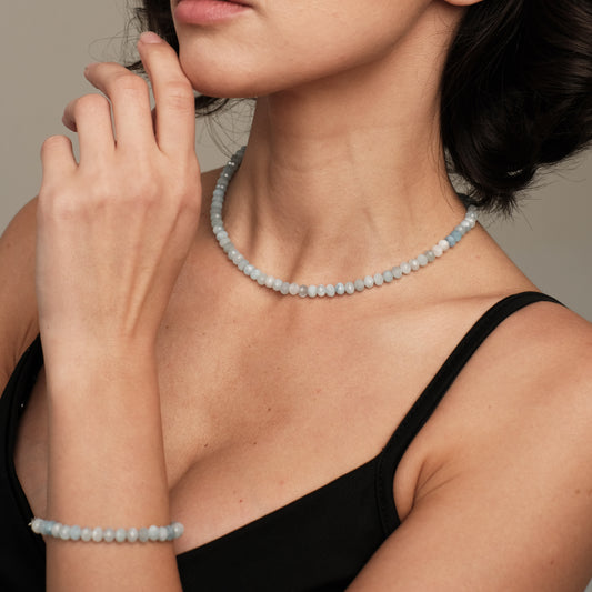 Akvamarīna kaklarota, 5-6mm.