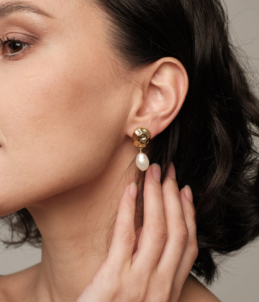 Apzeltīti auskari ar dabīgām pērlēm "Enni 2"
