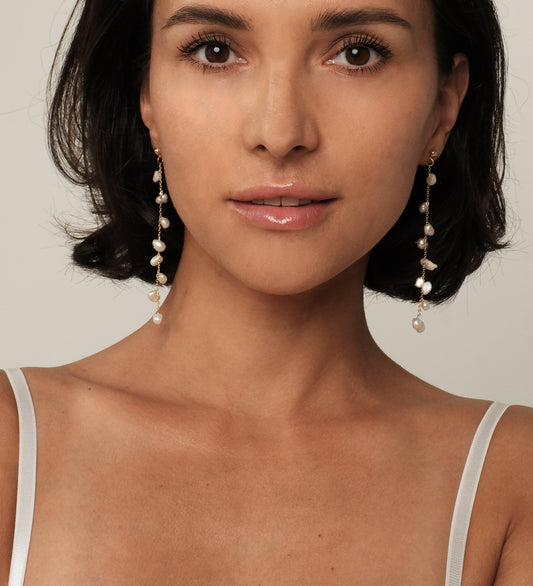 Apzeltīti auskari ar dabīgām baroka pērlēm "Enni"