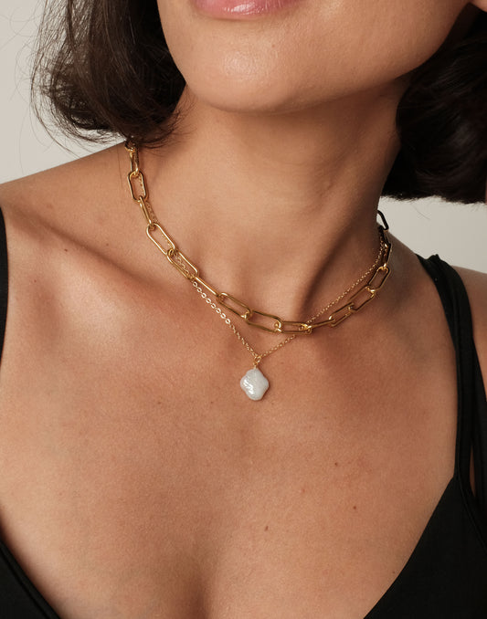 Apzeltīta kaklarota ar dabīgām pērlēm "Enni"