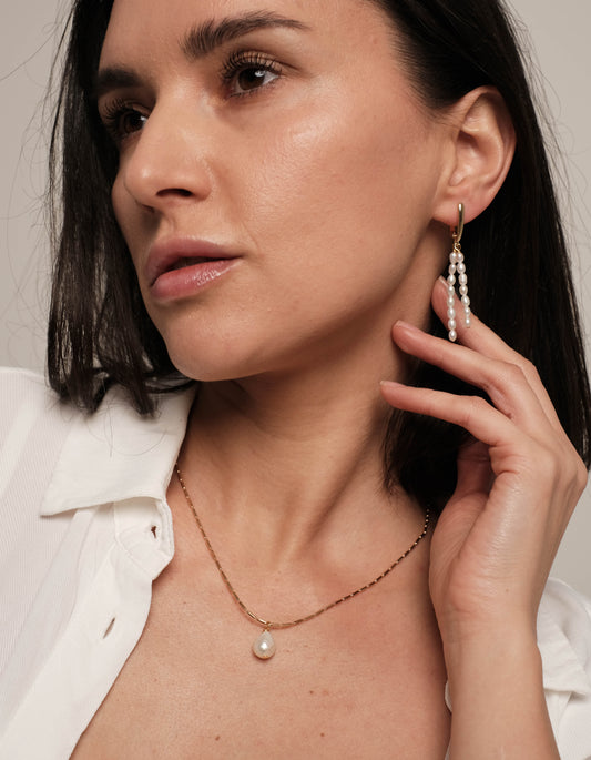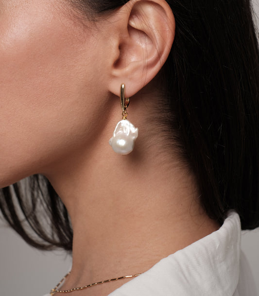 Apzeltīti auskari ar dabīgām pērlēm "Classic BIG"
