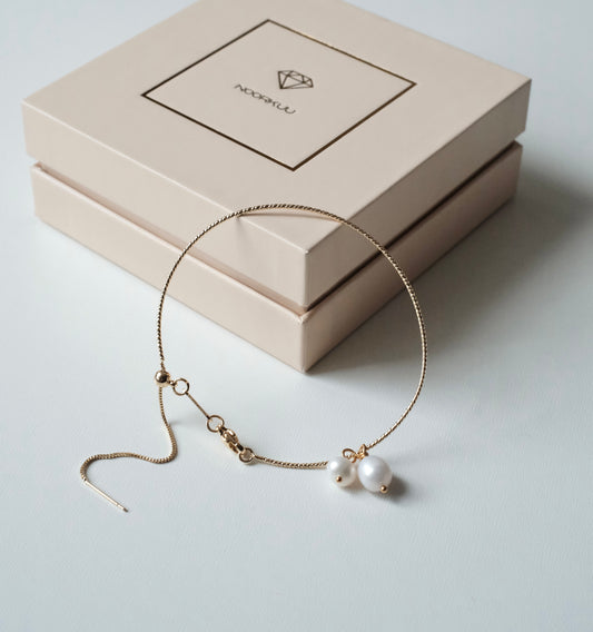 Apzeltīta ķēdīte ar dabīgo pērli, 8mm