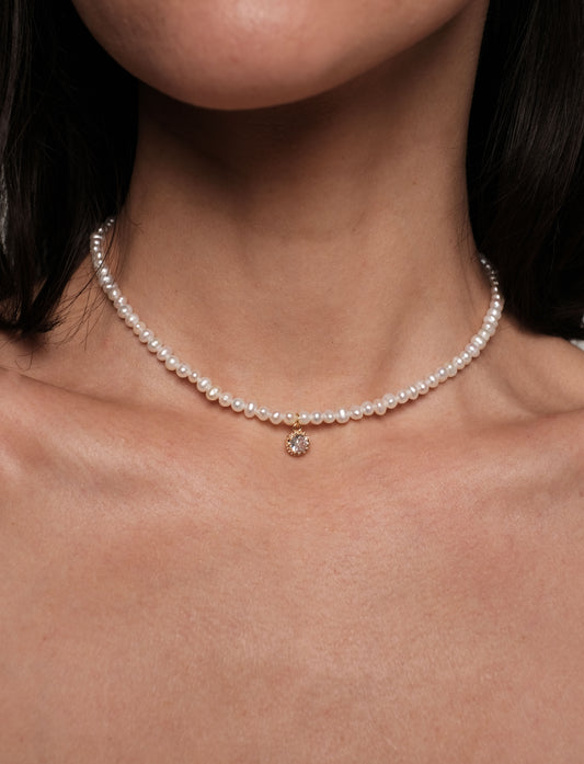 Dabīgo pērļu un mēness akmens kaklarota "Moon"