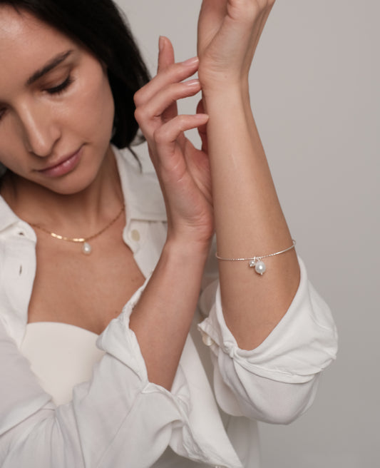 Pērļu rokassprādze ar apsudrabotām detaļām