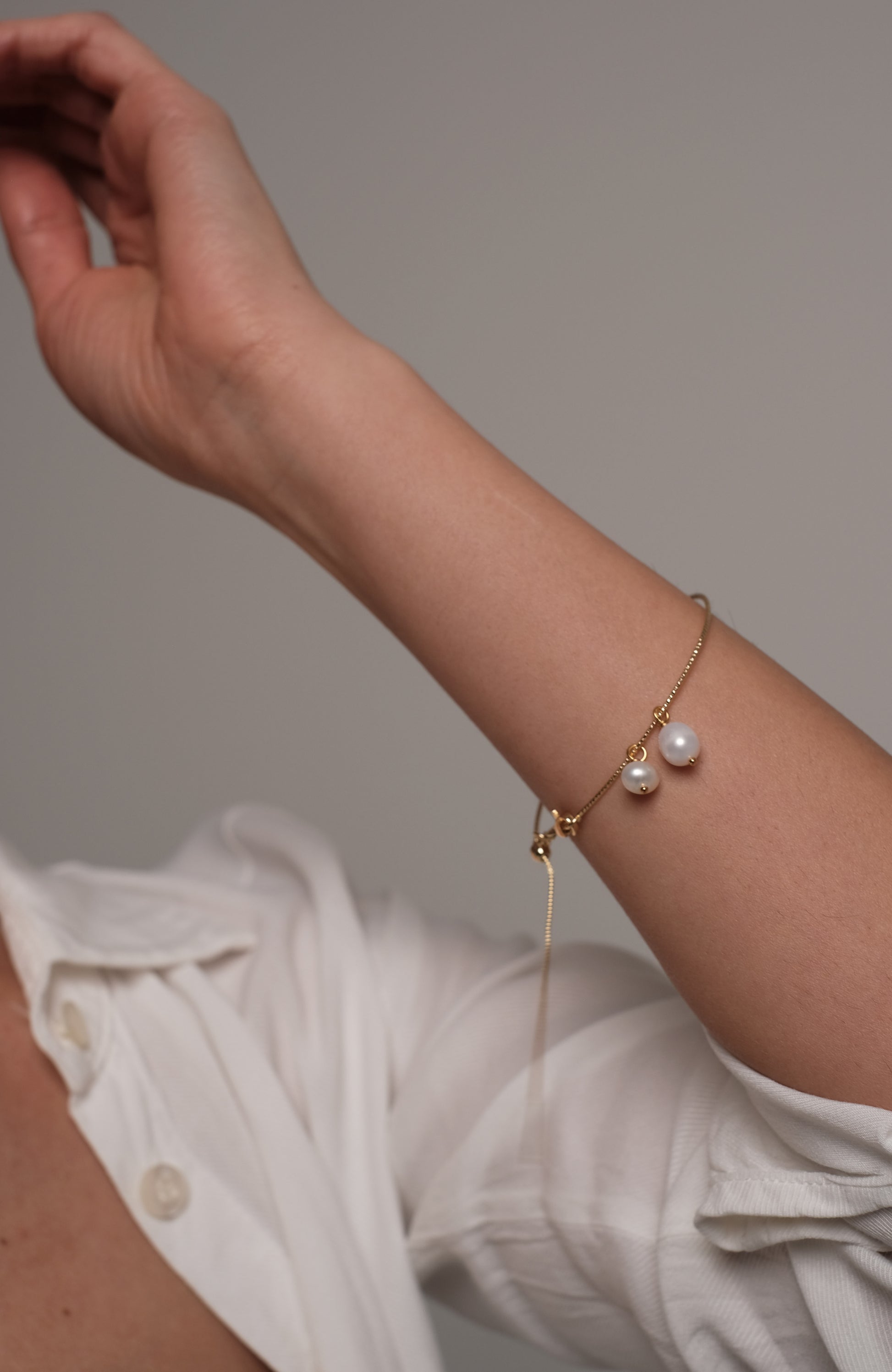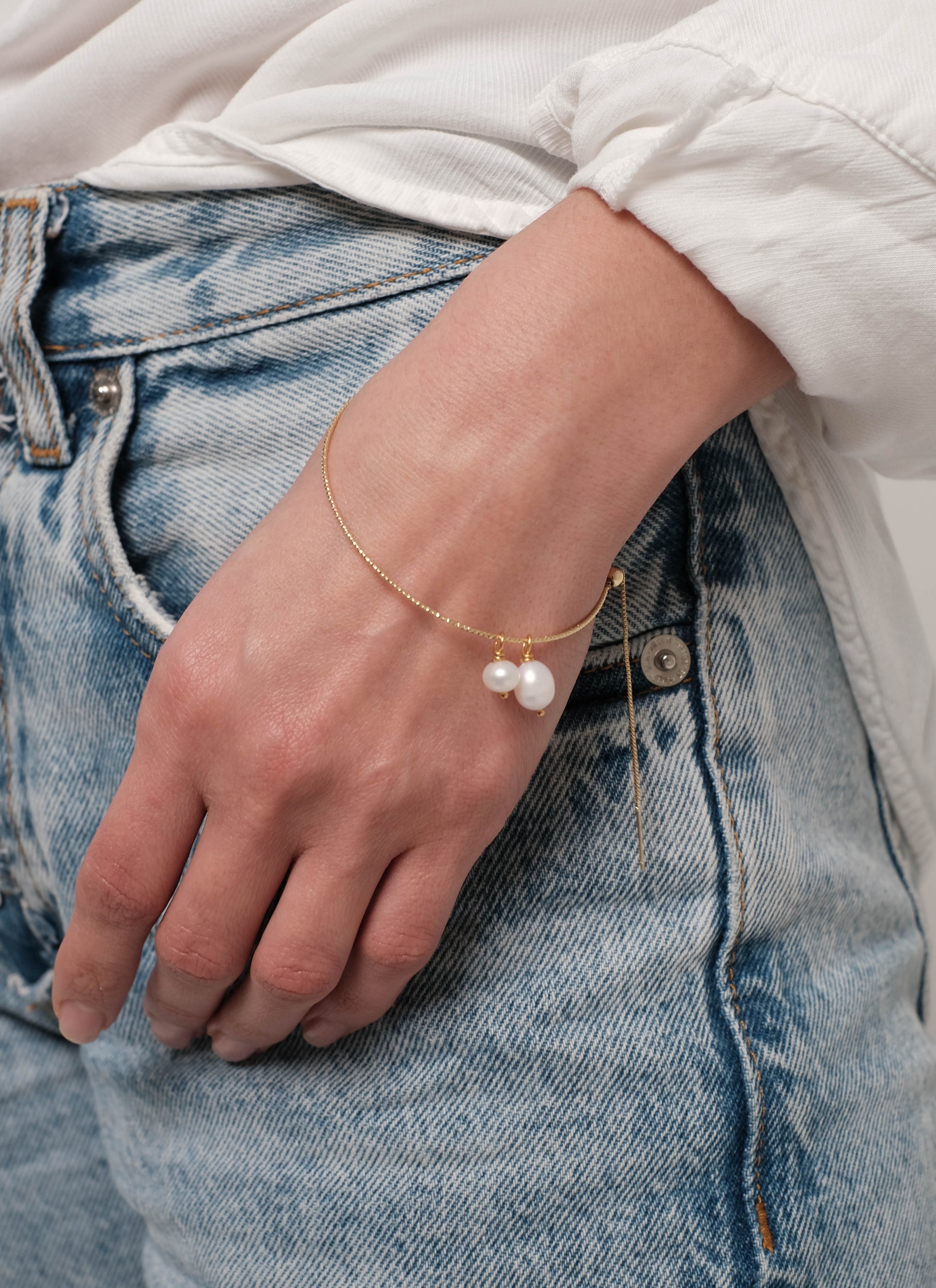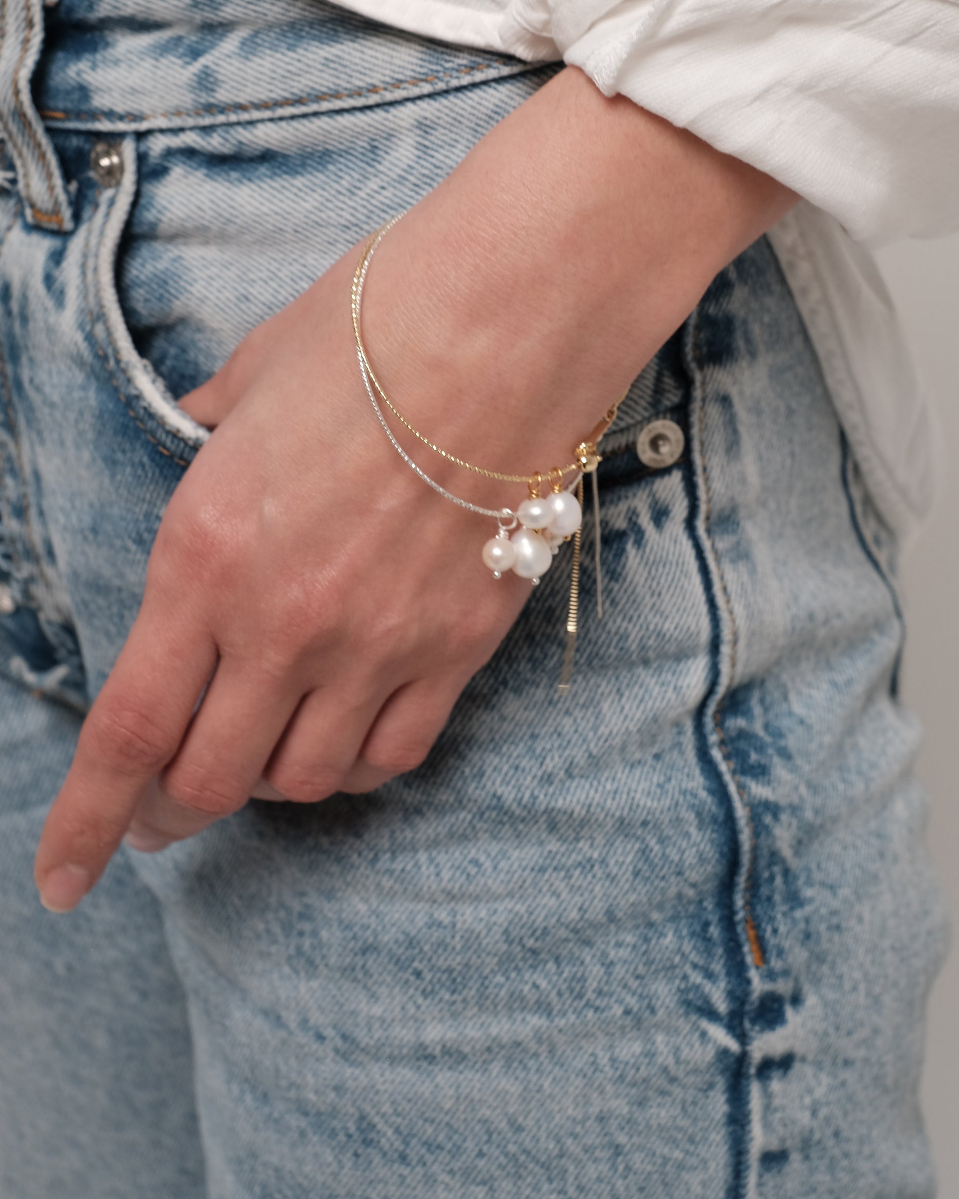 Apzeltīta rokassprādze ar dabīgiem pērlēm "Roundy"