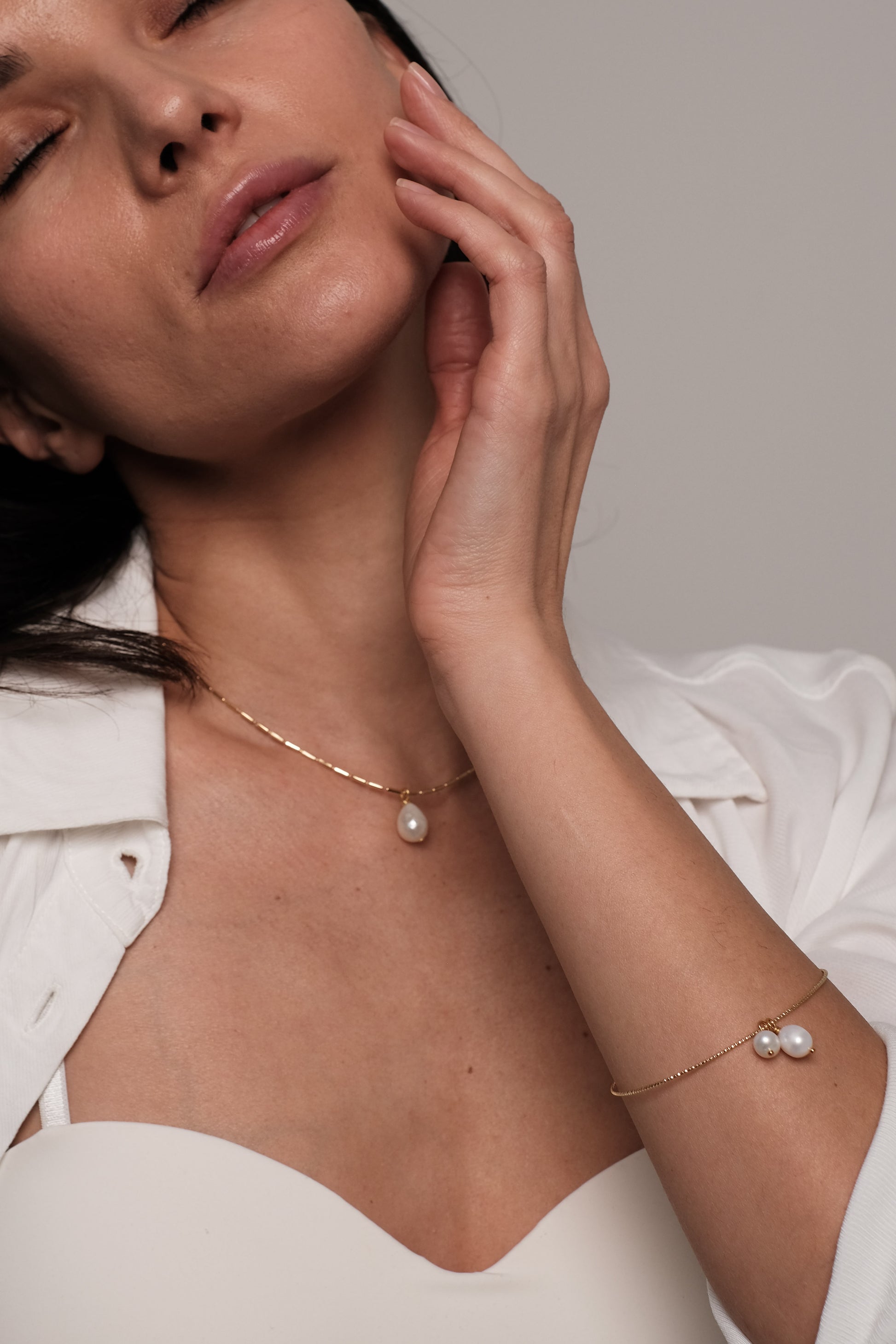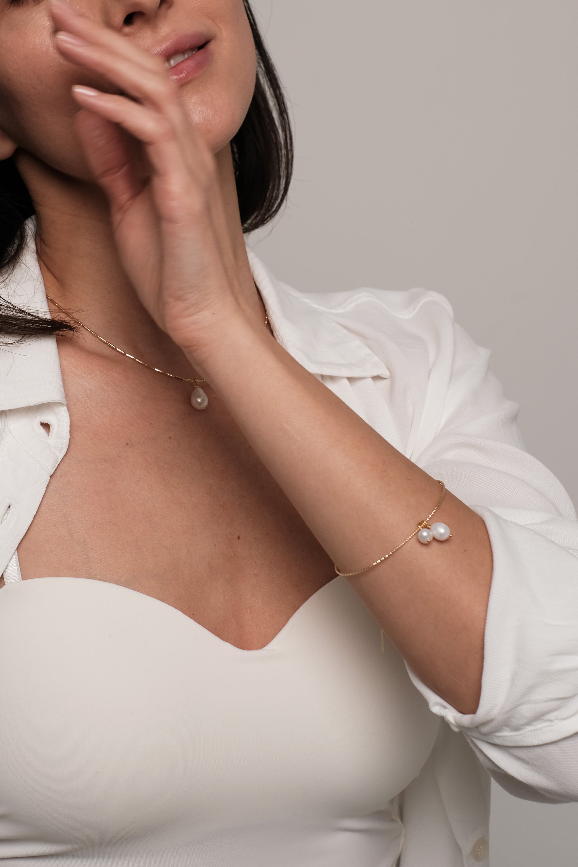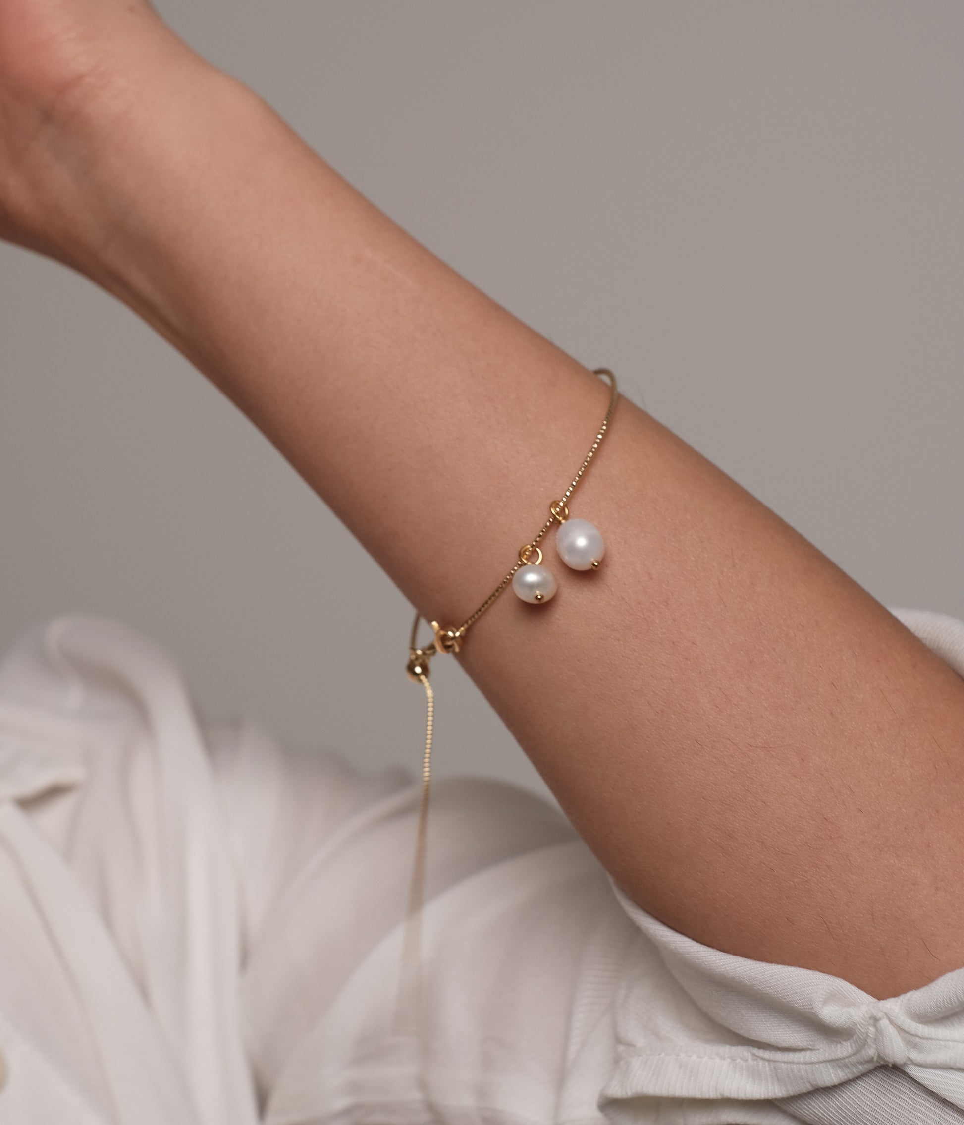 Apzeltīta rokassprādze ar dabīgiem pērlēm "Roundy"