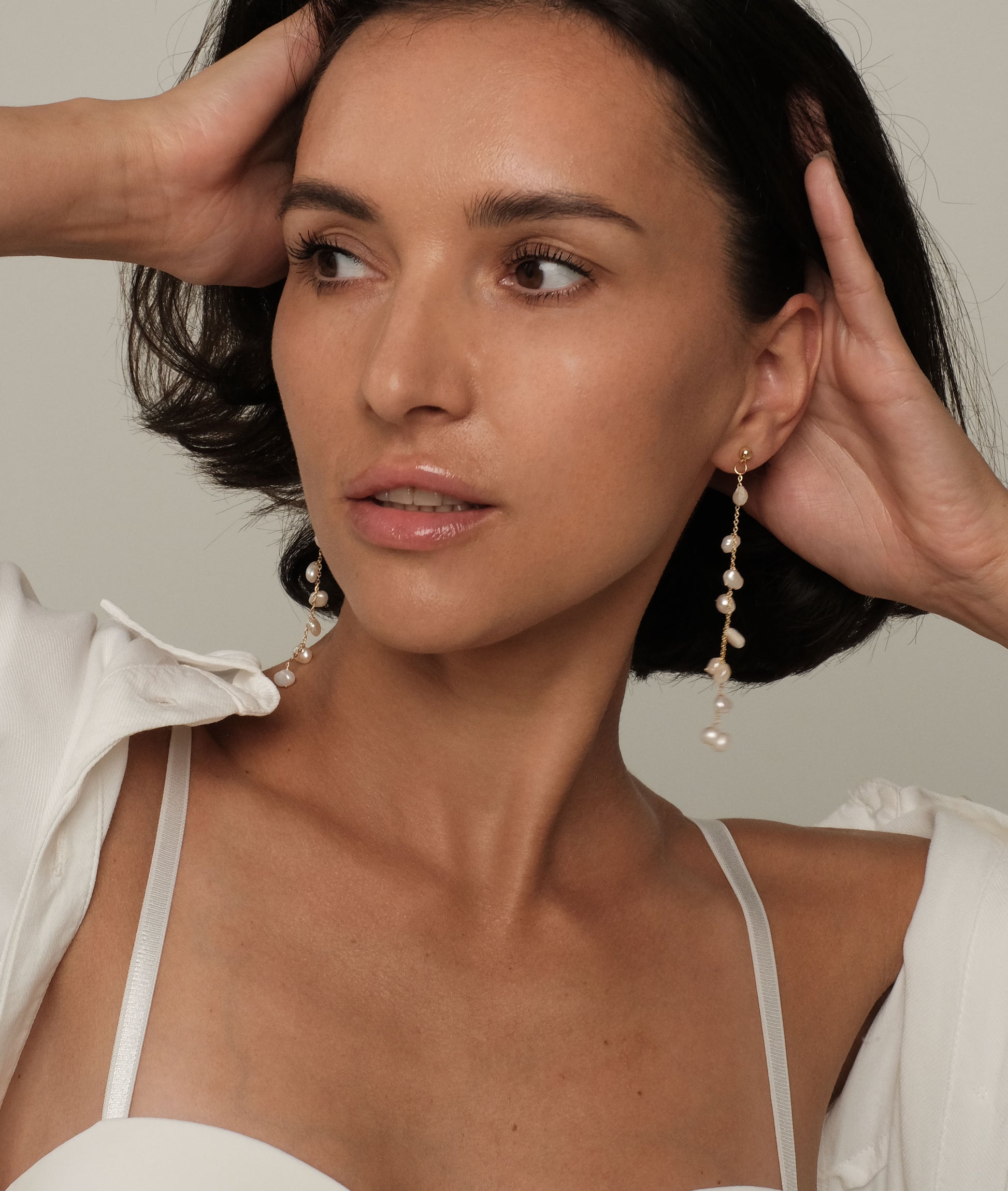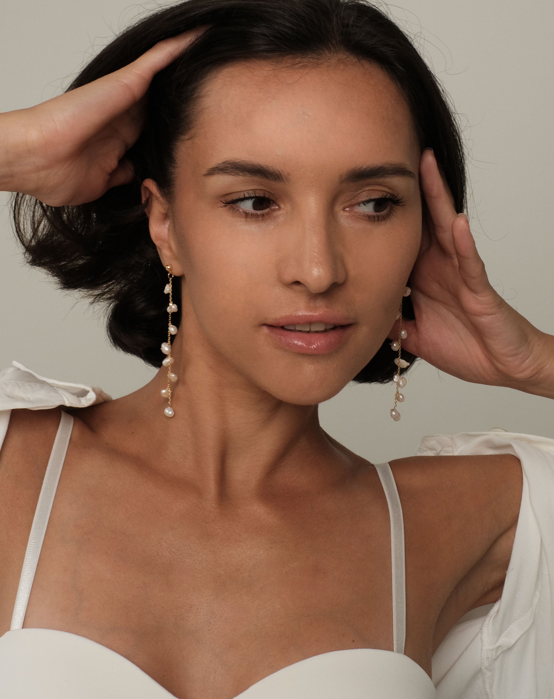Apzeltīti auskari ar dabīgām baroka pērlēm "Enni"