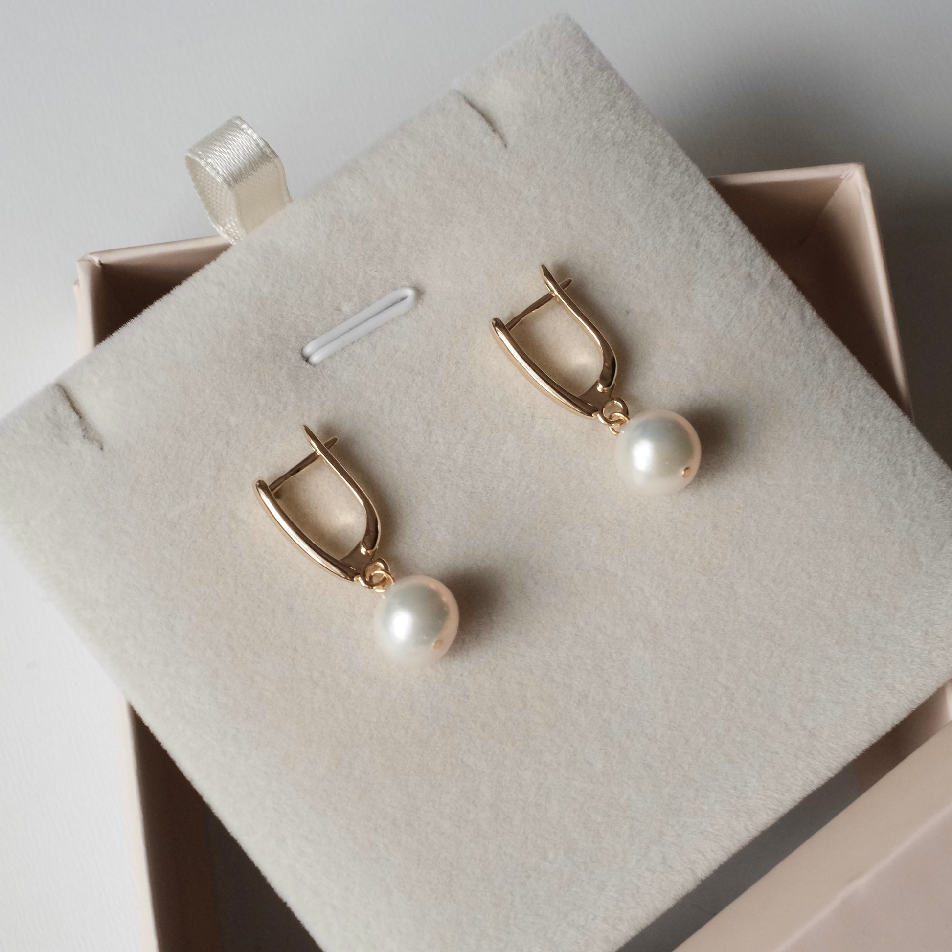 Apzeltīti auskari ar dabīgām pērlēm.