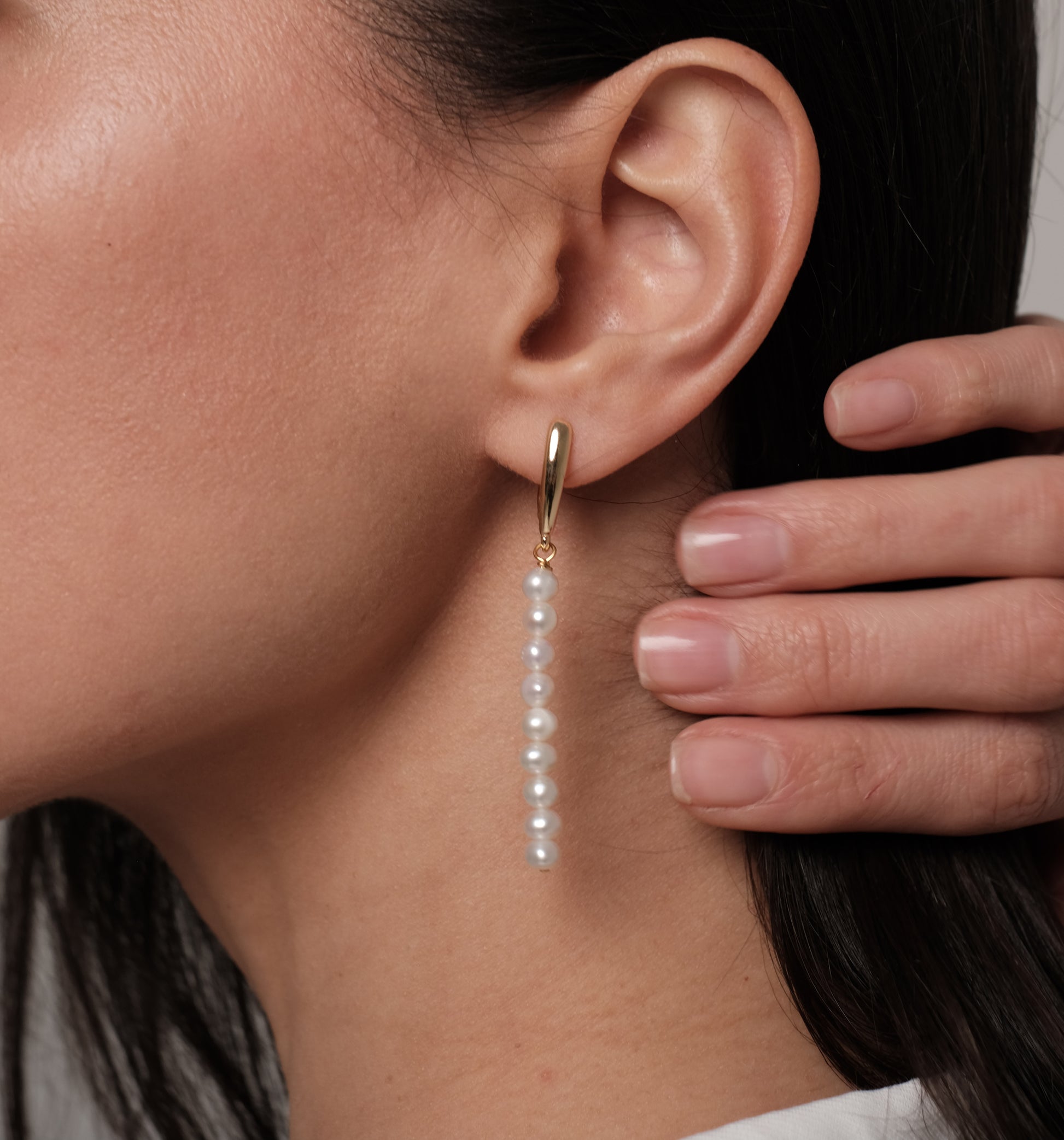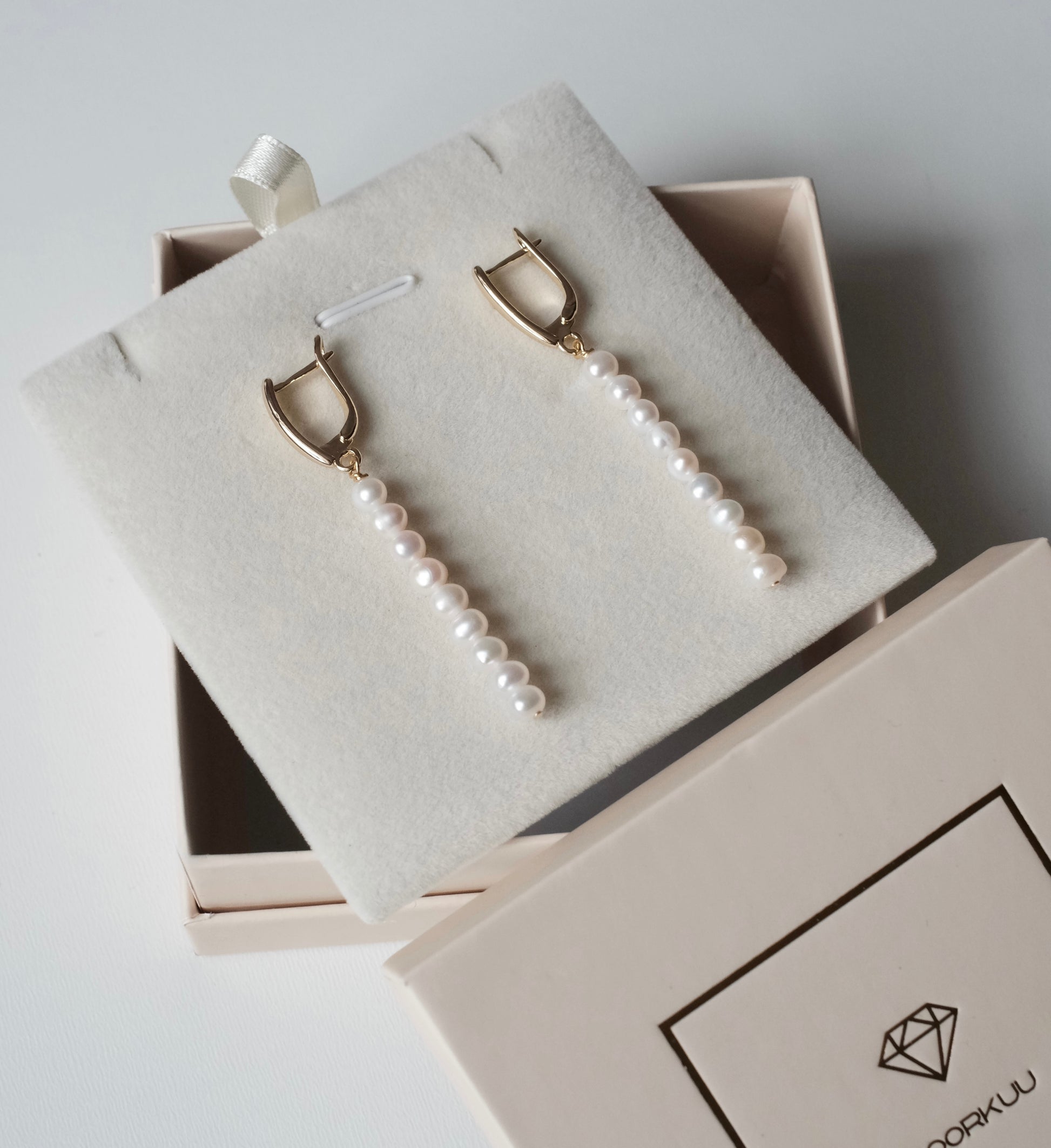 Apzeltīti auskari ar dabīgām pērlēm "Longy"