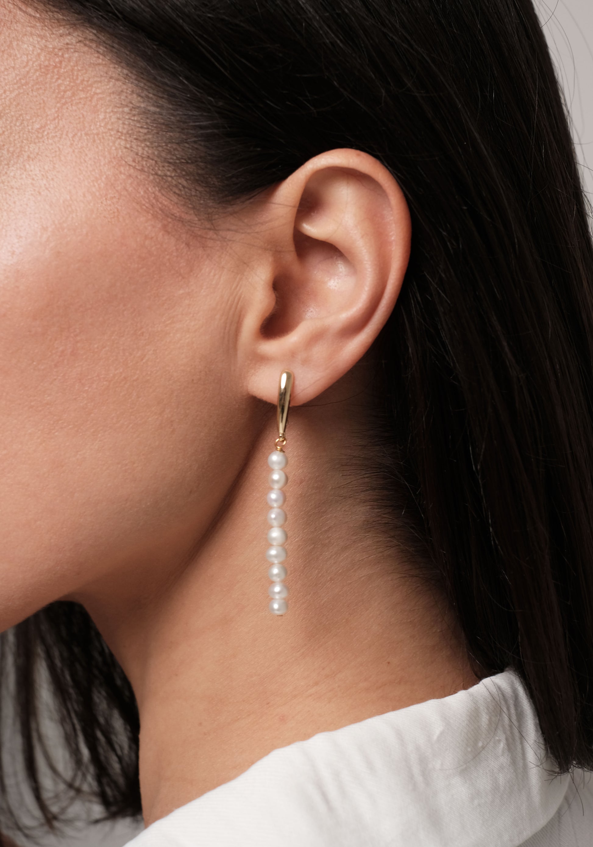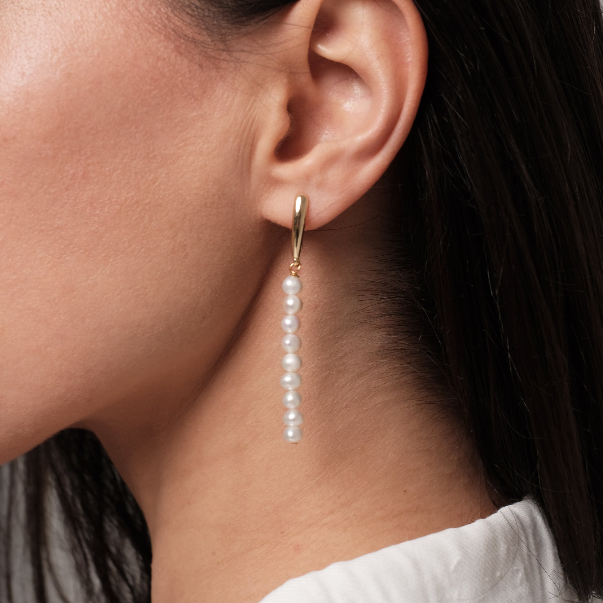 Apzeltīti auskari ar dabīgām pērlēm.