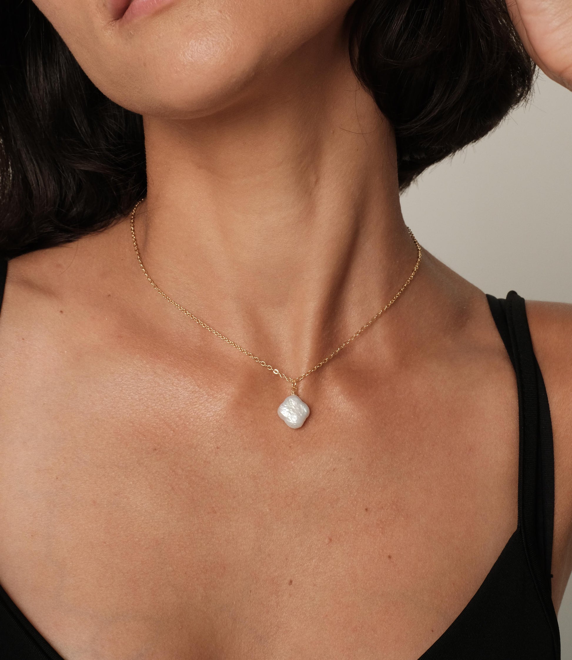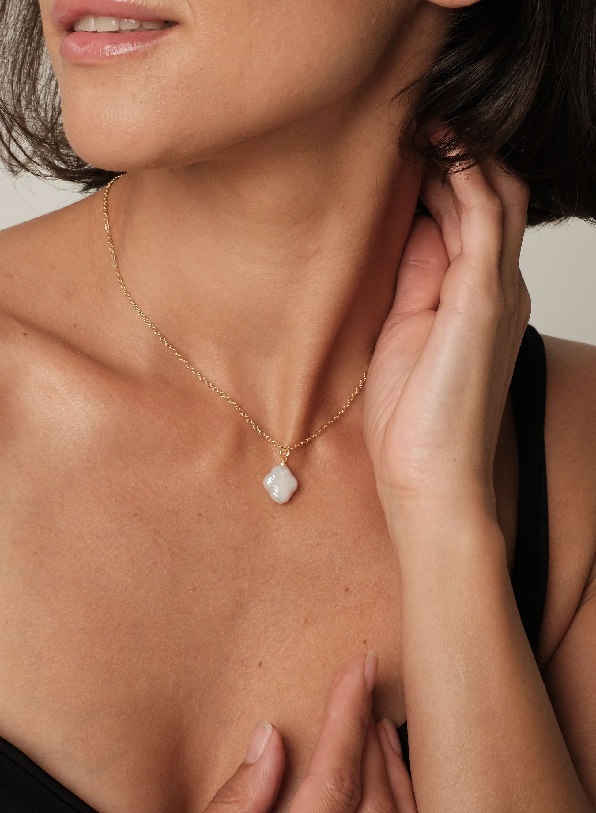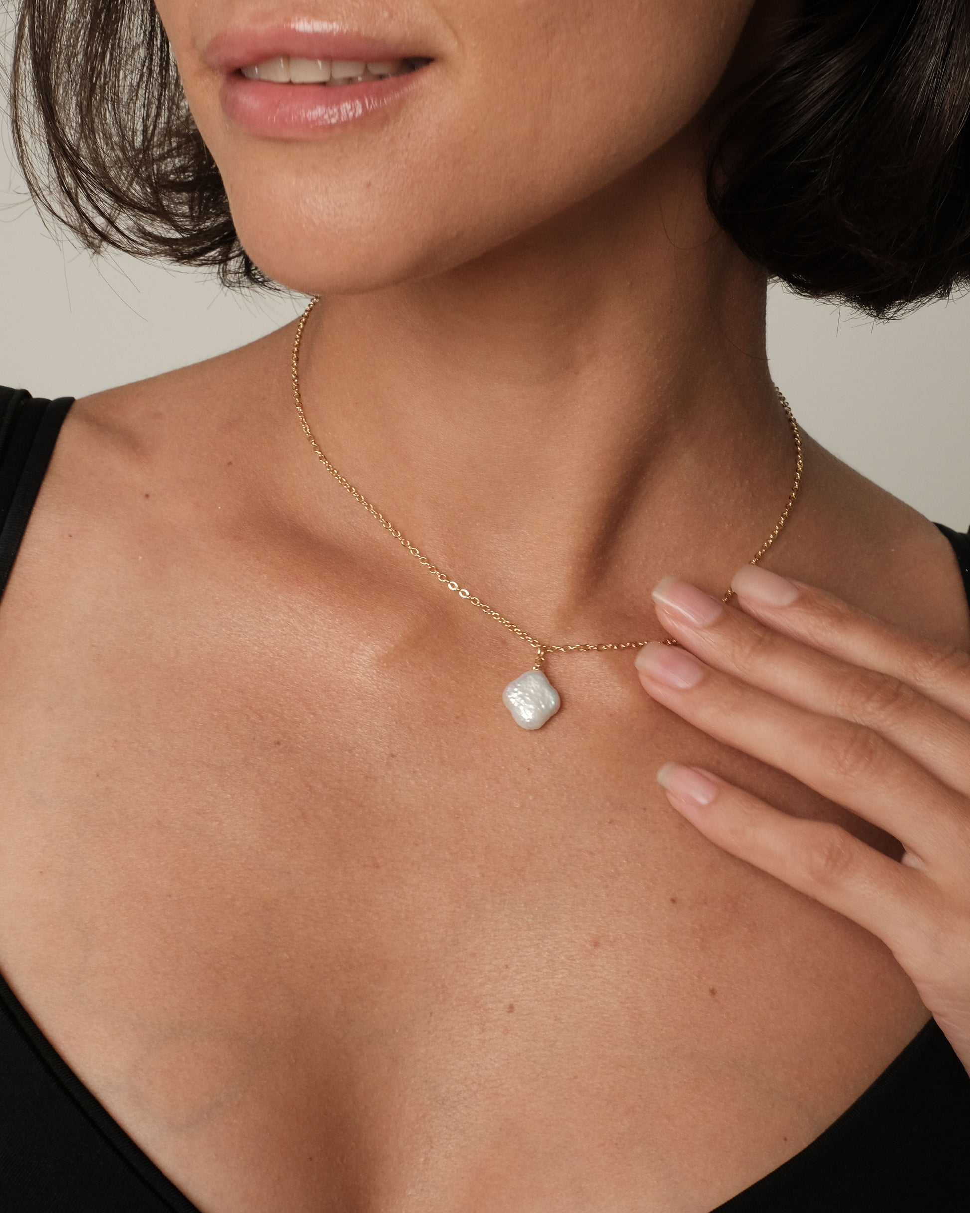 Apzeltīta kaklarota ar dabīgo pērli "Cross"