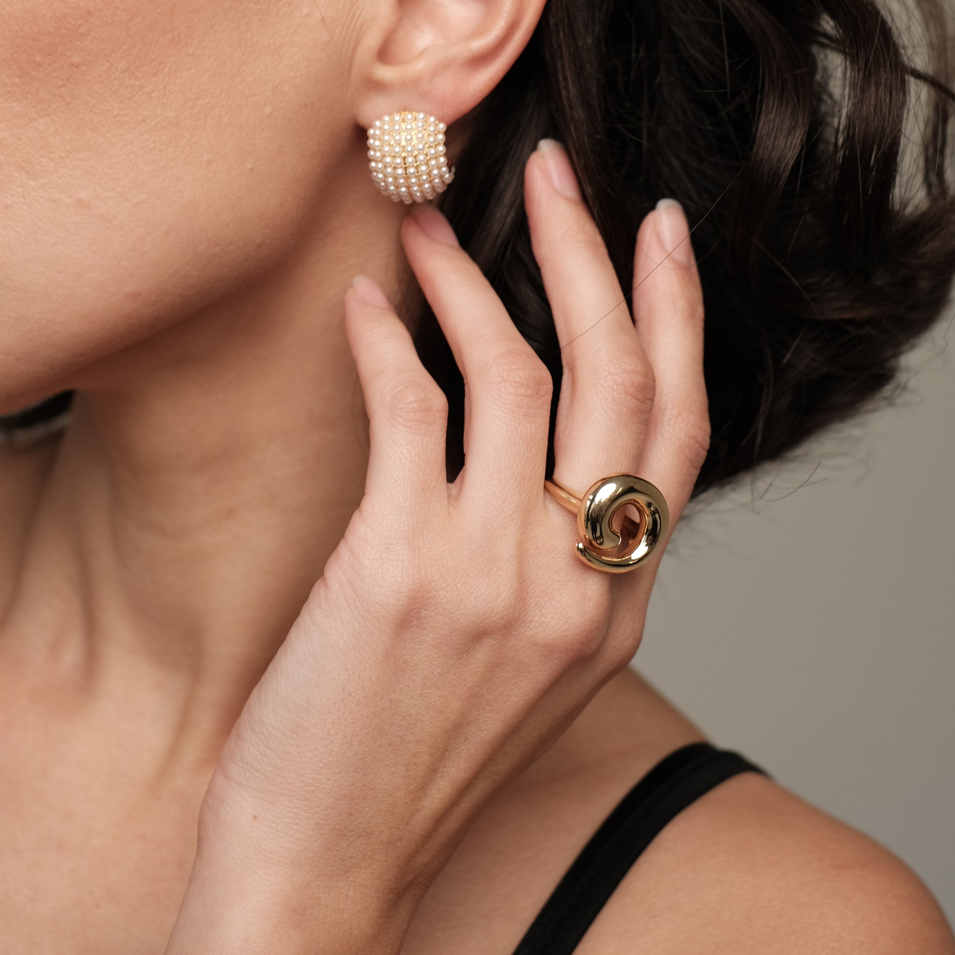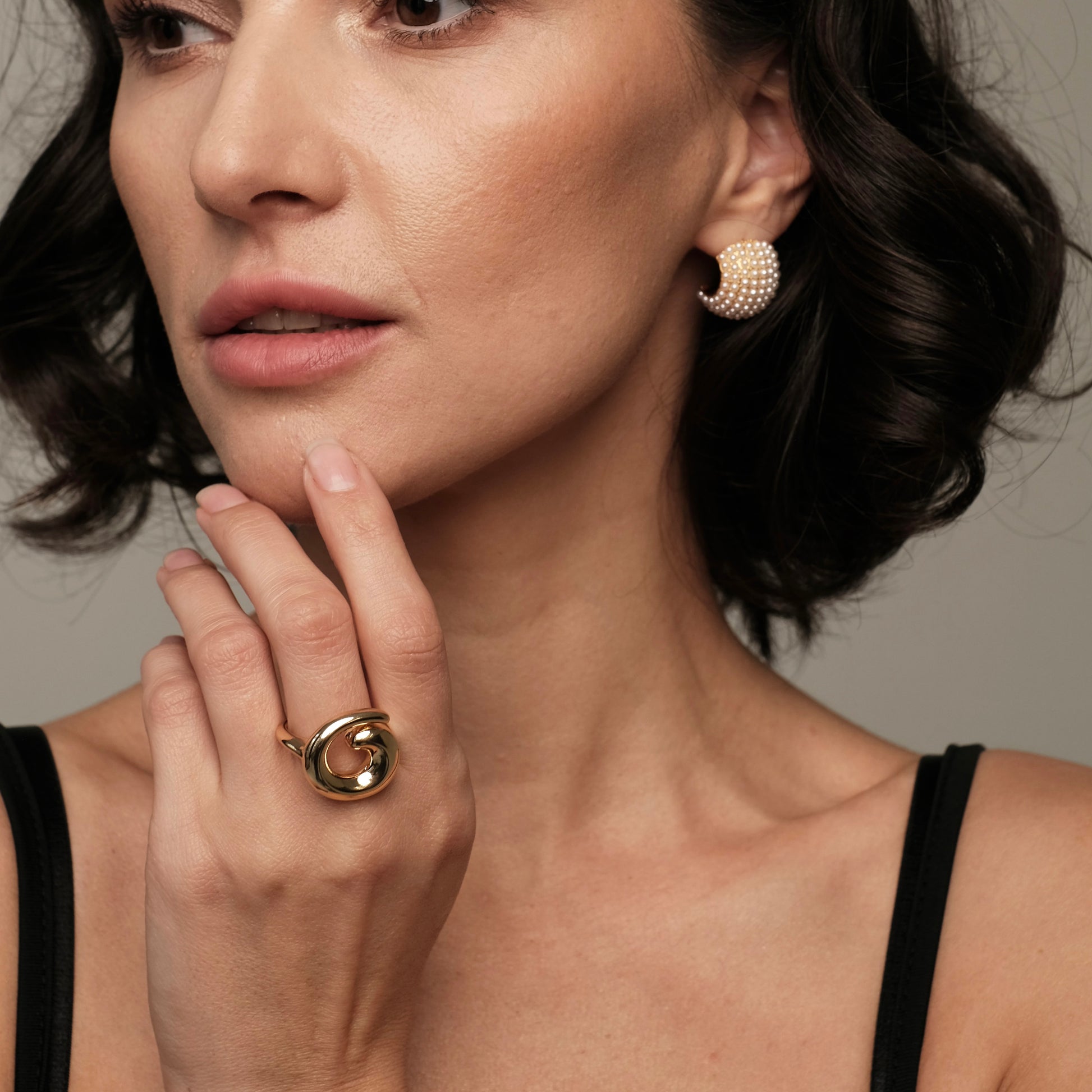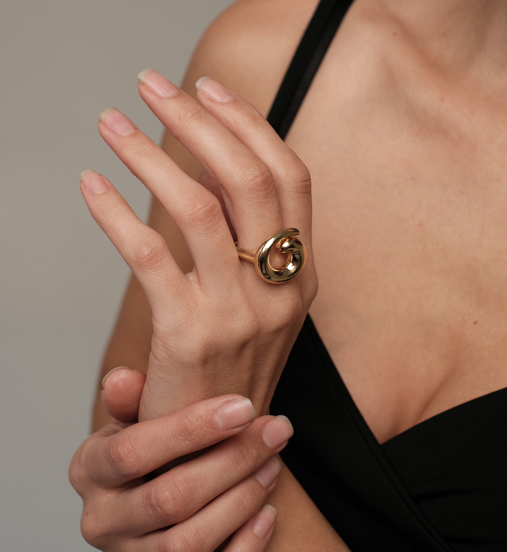 Skaists un unikāls gredzens, nerūsējošais tērauds, pārklāts ar zeltu.