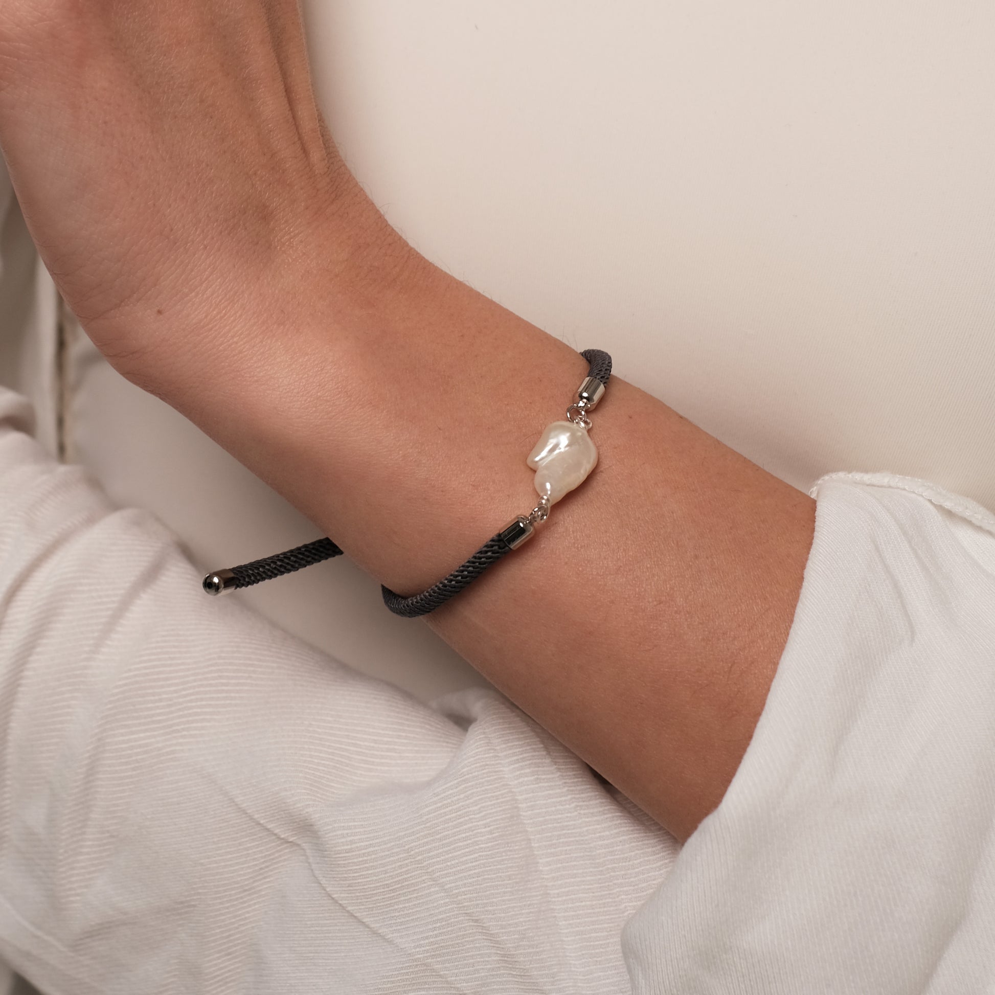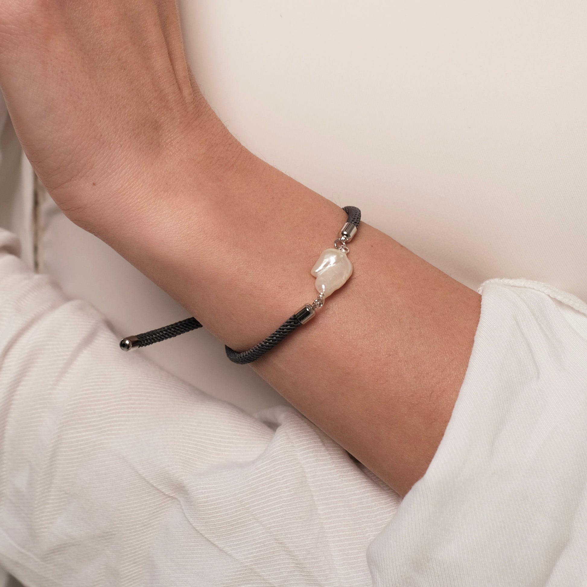 Pelēka rokassprādze ar Baroque pērli