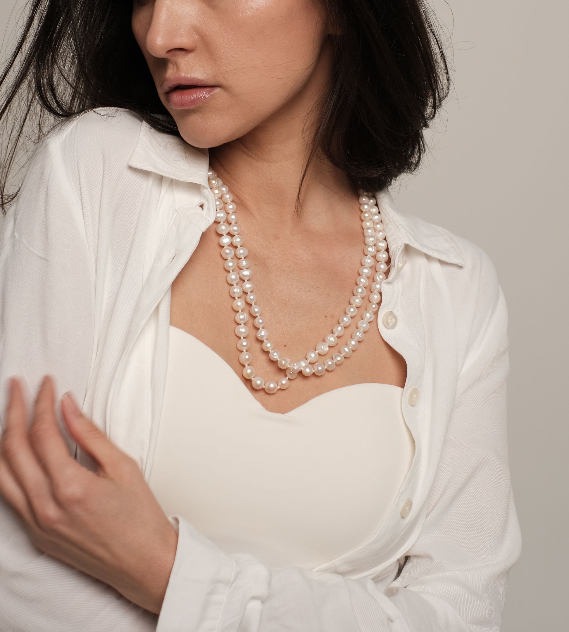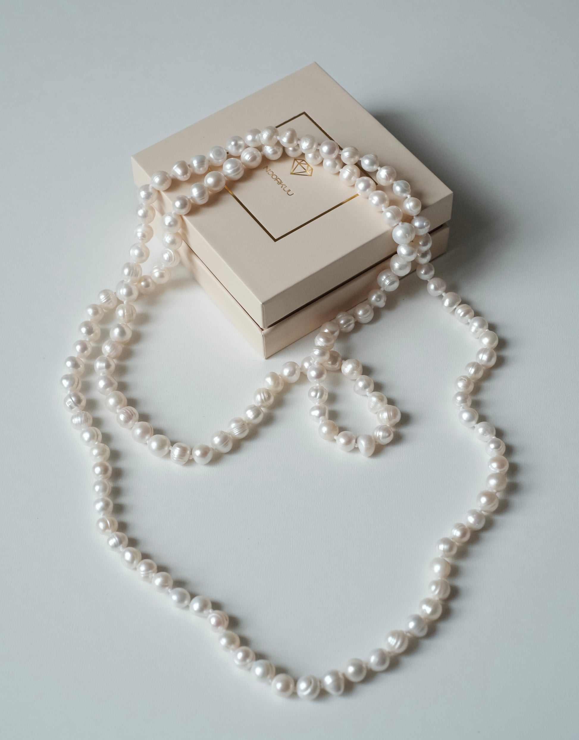 Garums, pērļu izmērs un kvalitāte: 120 cm. Šīs ir dabīgas baroka pērles. Katra pērle ir atšķirīga un unikāla. Uz pērlēm var būt ieslēgumi vai nelīdzenumi.