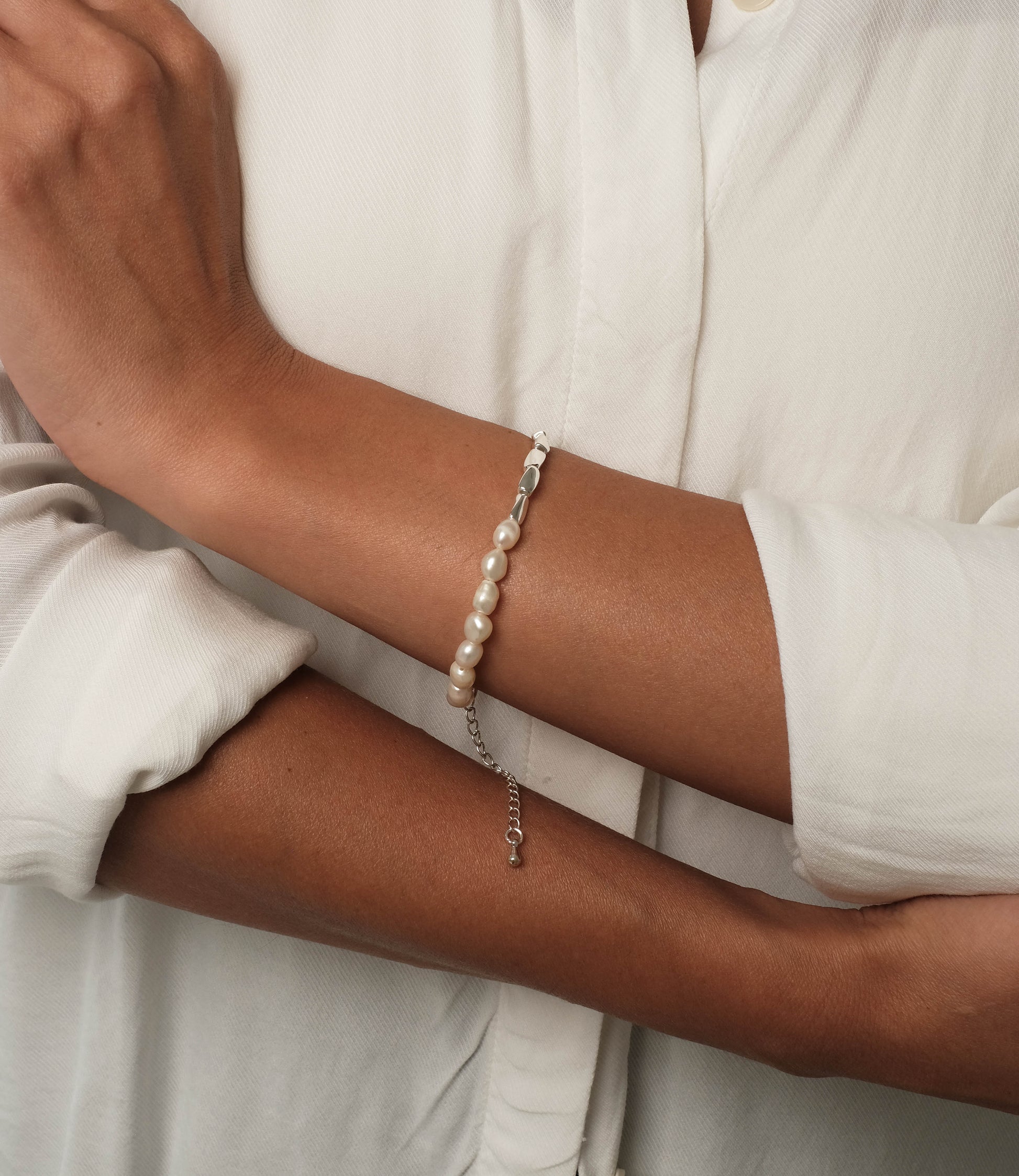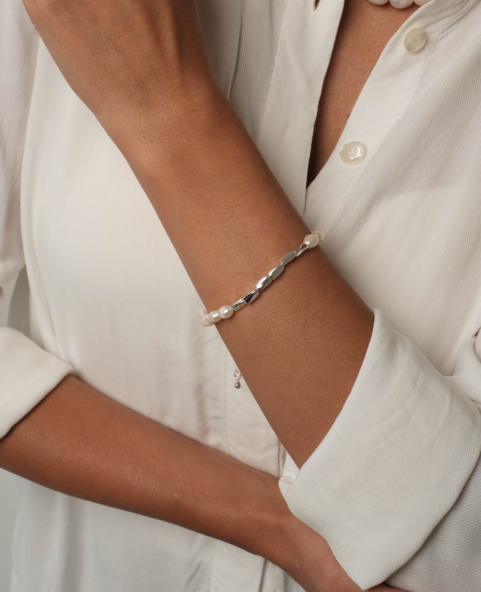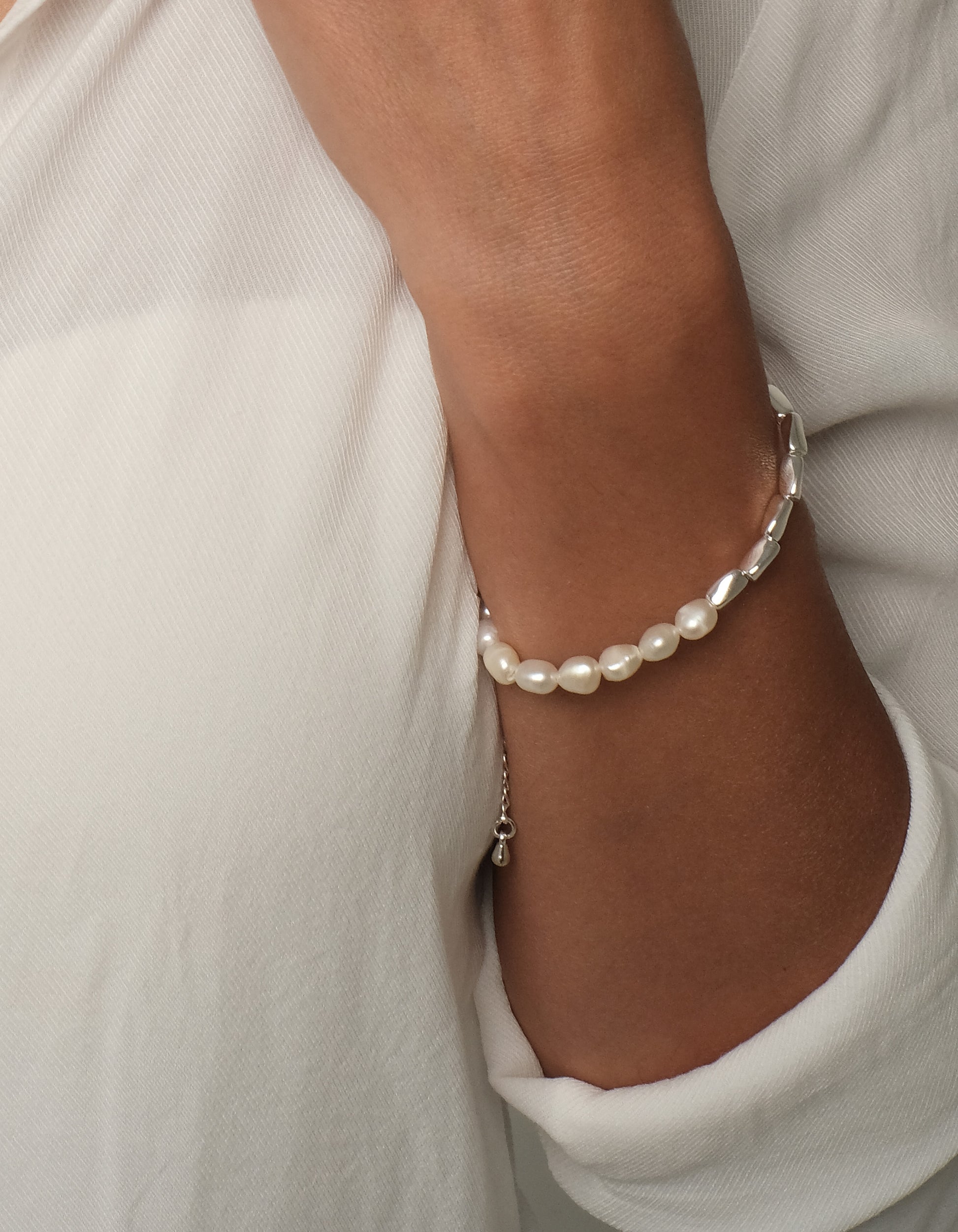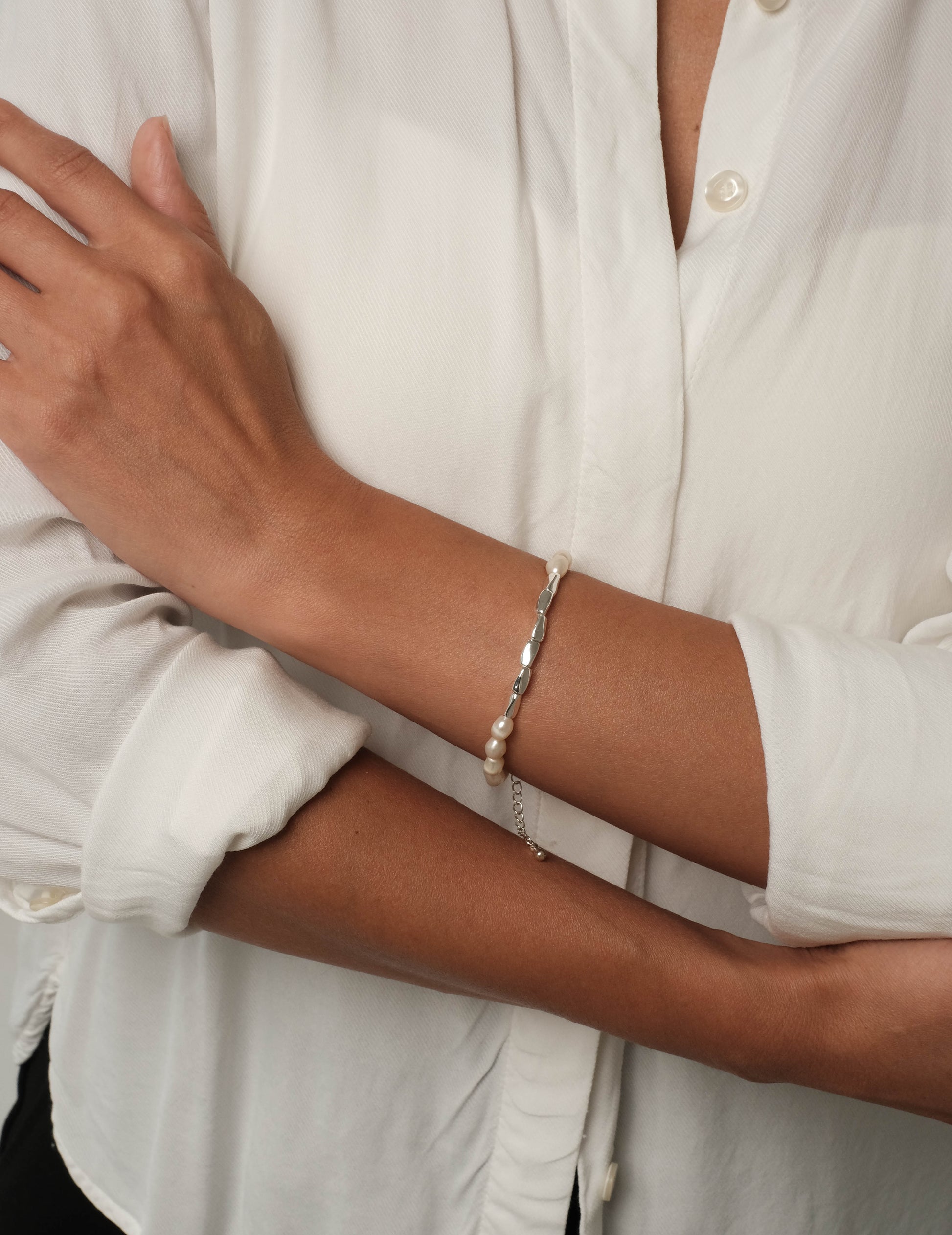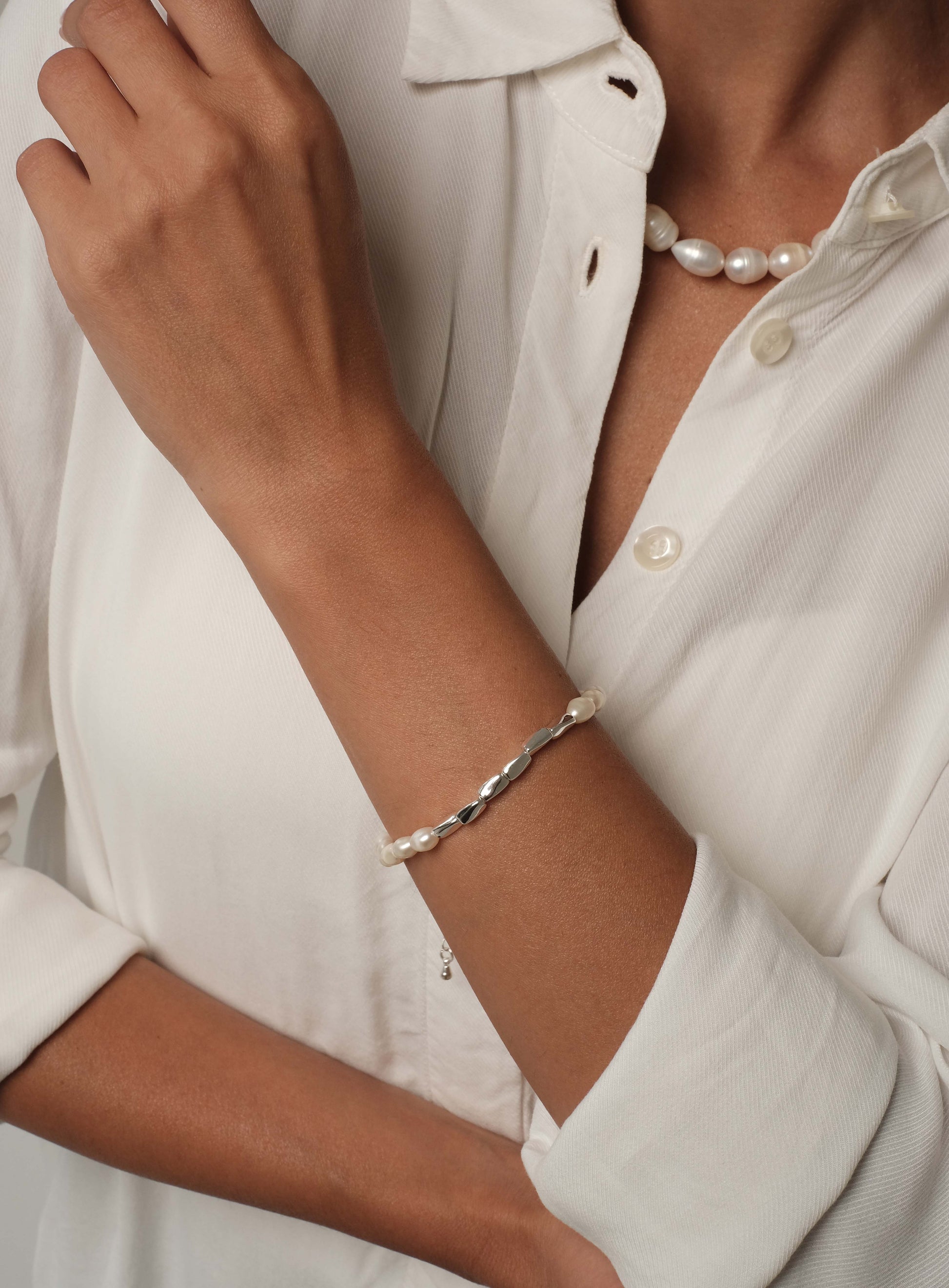 Pērļu rokassprādze ar apsudrabotām detaļām