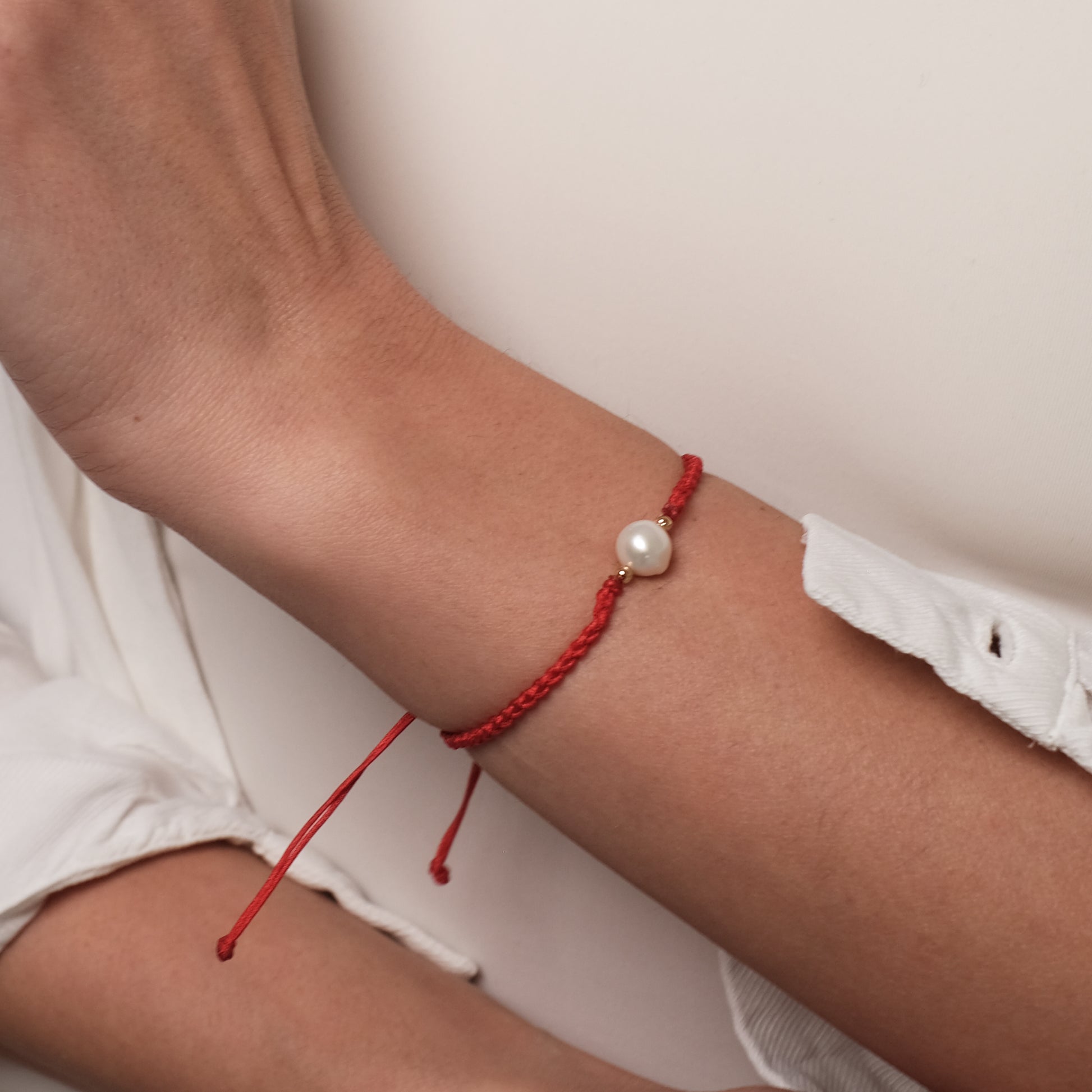 Sarkana rokassprādze ar pērli