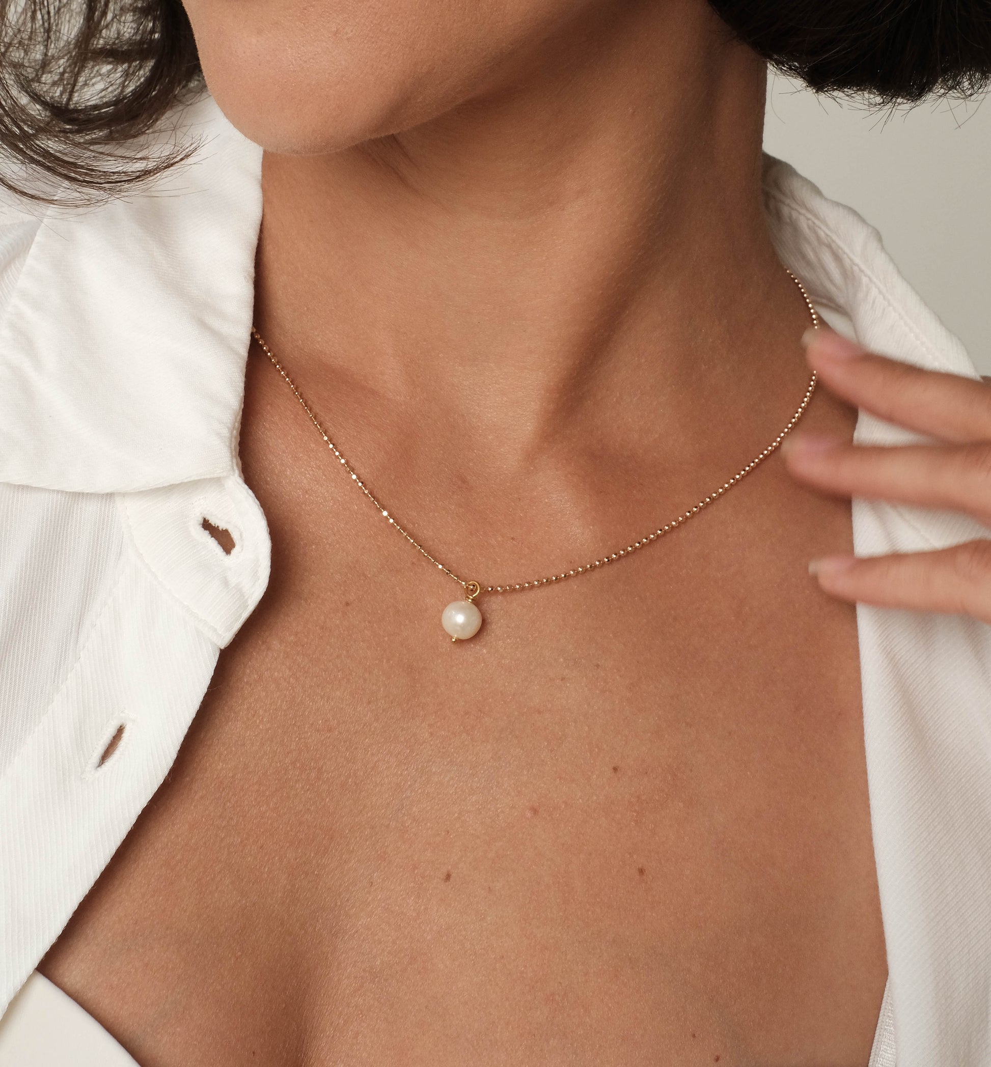Gold plated necklace with natural pearl, 8mm