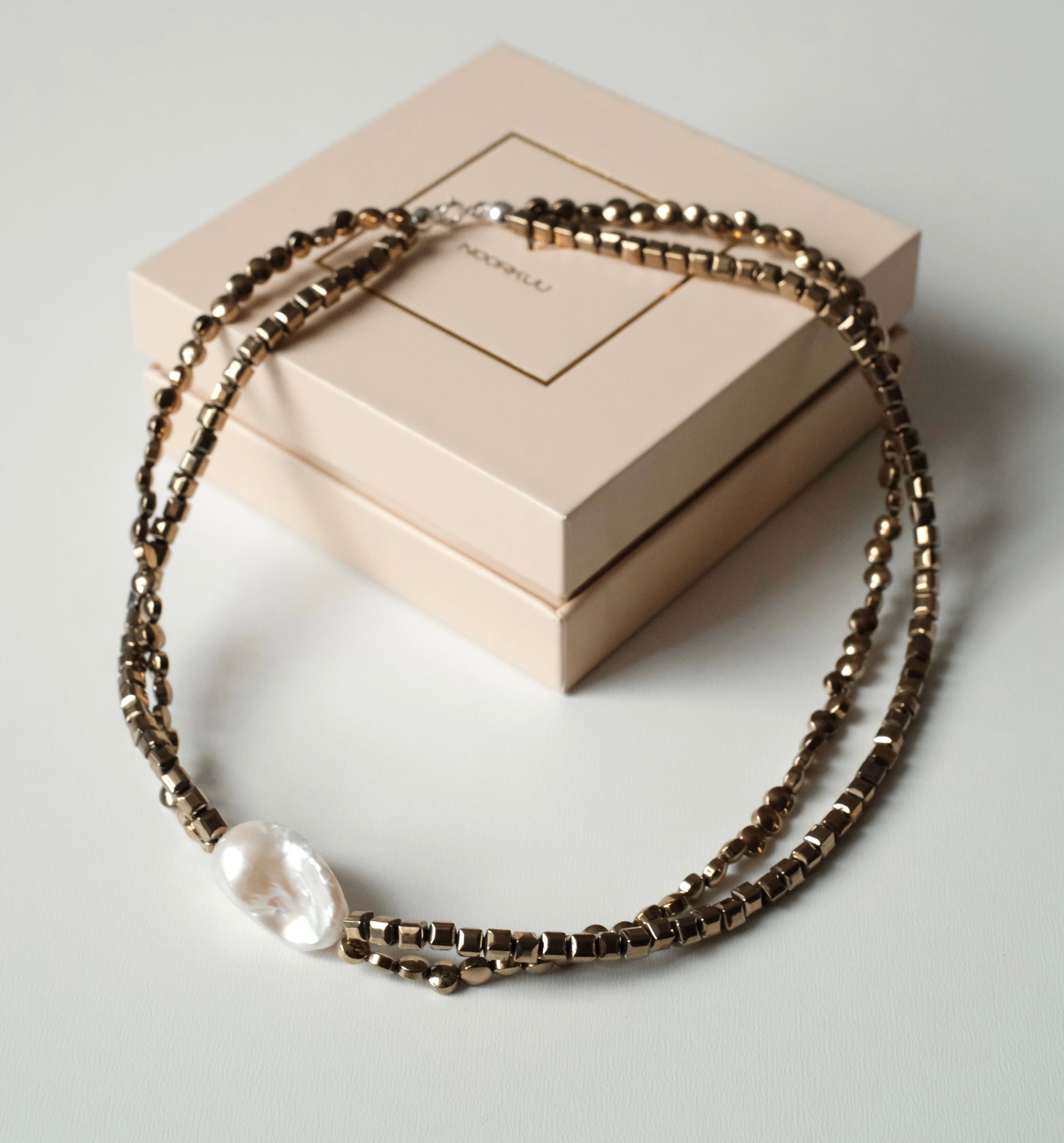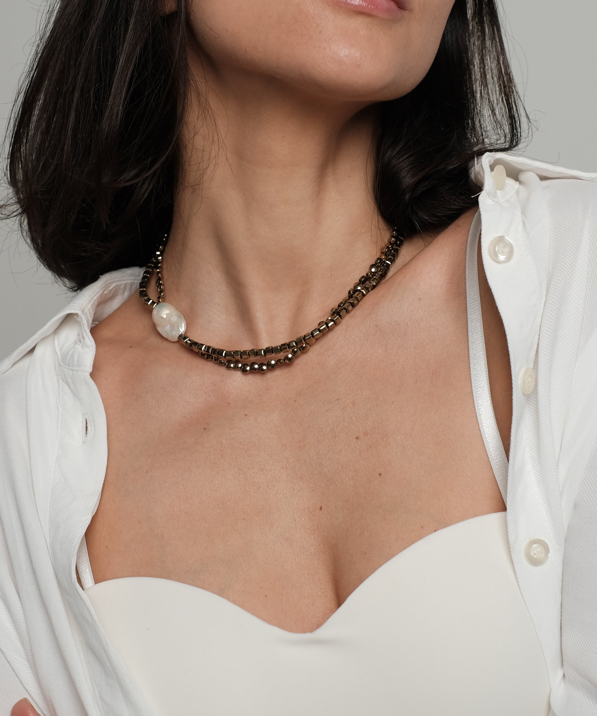 Natural pearl and hematite necklace "Double"