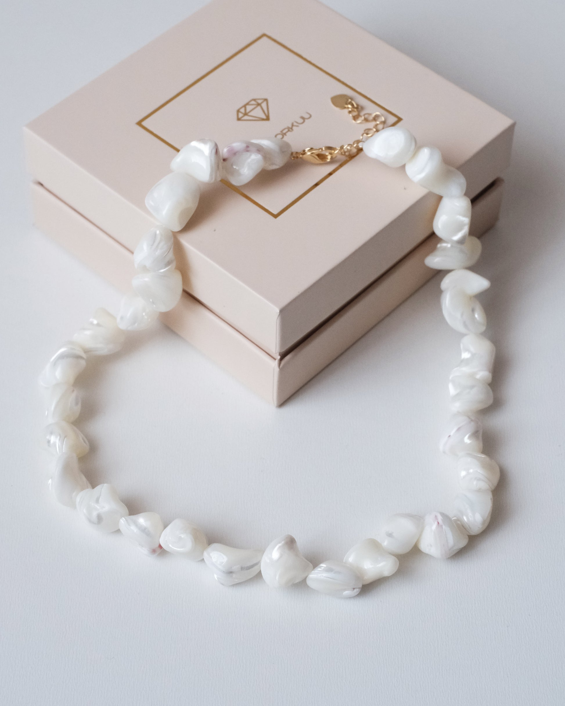 Mother of pearl is a crystallized mineral compound that forms on the inner shell layer of certain mollusks.
